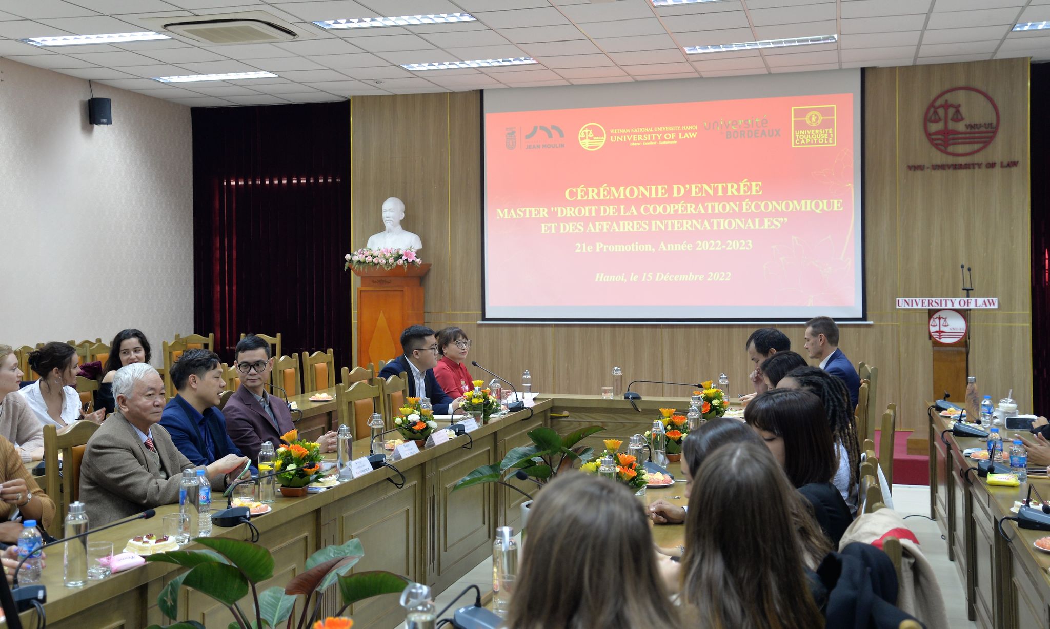 Chiều 15/12/2022, Trường ĐH Luật, ĐHQGHN đã tổ chức Lễ khai giảng khóa 21 chương trình đào tạo thạc sĩ “Luật Hợp tác kinh tế và Kinh doanh quốc tế”.