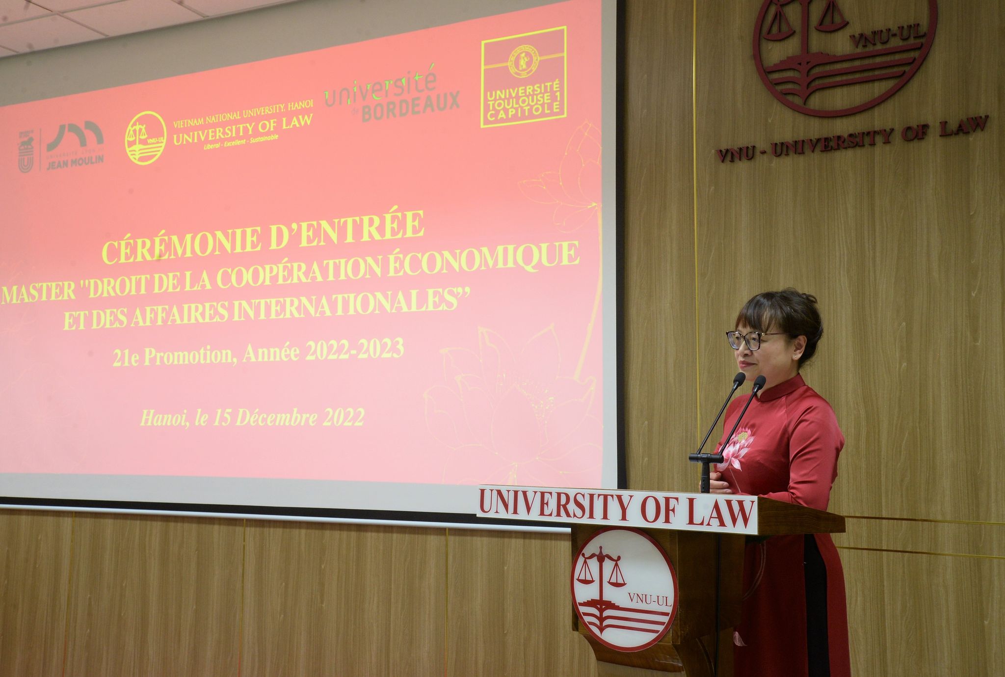 Phát biểu tại lễ khai giảng, PGS.TS. Nguyễn Thị Quế Anh cho biết, khóa học 21 được khai giảng trong dịp rất đặc biệt là Trường Đại học Luật chuẩn bị kỷ niệm 46 năm thành lập. Đây là chương trình học mang tính quốc tế, các học viên đã tốt nghiệp đều đánh giá cao về chương trình đạo tạo này bởi chương trình học không chỉ mang lại cho các học viên chuyên môn toàn diện mà còn là sự kết nối giao lưu văn hóa giữa hai nước Việt Nam và Pháp.