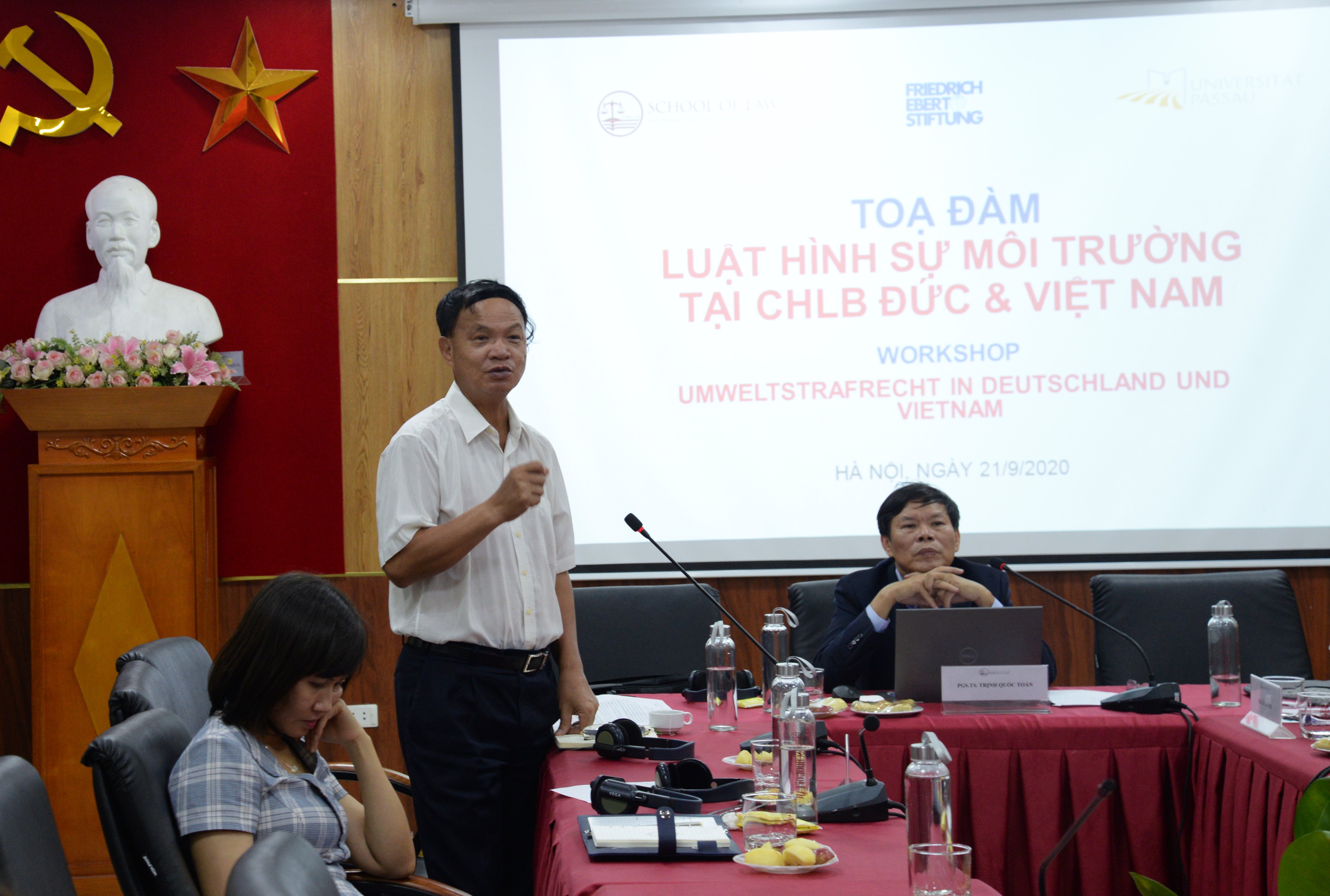 Trong khuôn khổ khóa học cũng diễn ra Tọa đàm khoa học với chủ đề “Luật hình sự môi trường tại CHLB Đức và Việt Nam” do PGS.TS. Trịnh Quốc Toản – Giám đốc Trung tâm Luật So sánh, Khoa Luật, ĐHQGHN và GS.TS. Robert Eser – Chủ nhiệm Bộ môn Luật Hình sự và Luật Tố tụng Hình sự Đức, châu Âu và quốc tế đồng chủ trì. Mở đầu Tọa đàm là tham luận của GS. TS. Robert Eser với nội dung về luật hình sự môi trường tại CHLB Đức. Trong bài tham luận của mình, GS TS. Robert Eser đã giới thiệu tổng quan về cách tiếp cận của CHLB Đức trong việc quy định và xử lý các vi phạm pháp luật và tội phạm về môi trường, mối quan hệ giữa pháp luật quốc gia với pháp luật quốc tế trong việc tội phạm hoá và xử lý hình sự tội phạm về môi trường… Về phía Việt Nam, tham luận của PGS.TS Phạm Văn Lợi, Vụ trưởng Vụ Pháp chế, Bộ Tài nguyên và môi trường cũng như ý kiến của nhiều chuyên gia khác đã đề cập, thảo luận các vấn đề của Bộ luật hình sự hiện hành đối với nhóm tội phạm về môi trường, về chủ thể của tội phạm, về các hình thức trách nhiệm hình sự, thời hiệu và thủ tục truy cứu trách nhiệm hình sự đối với tội phạm môi trường…