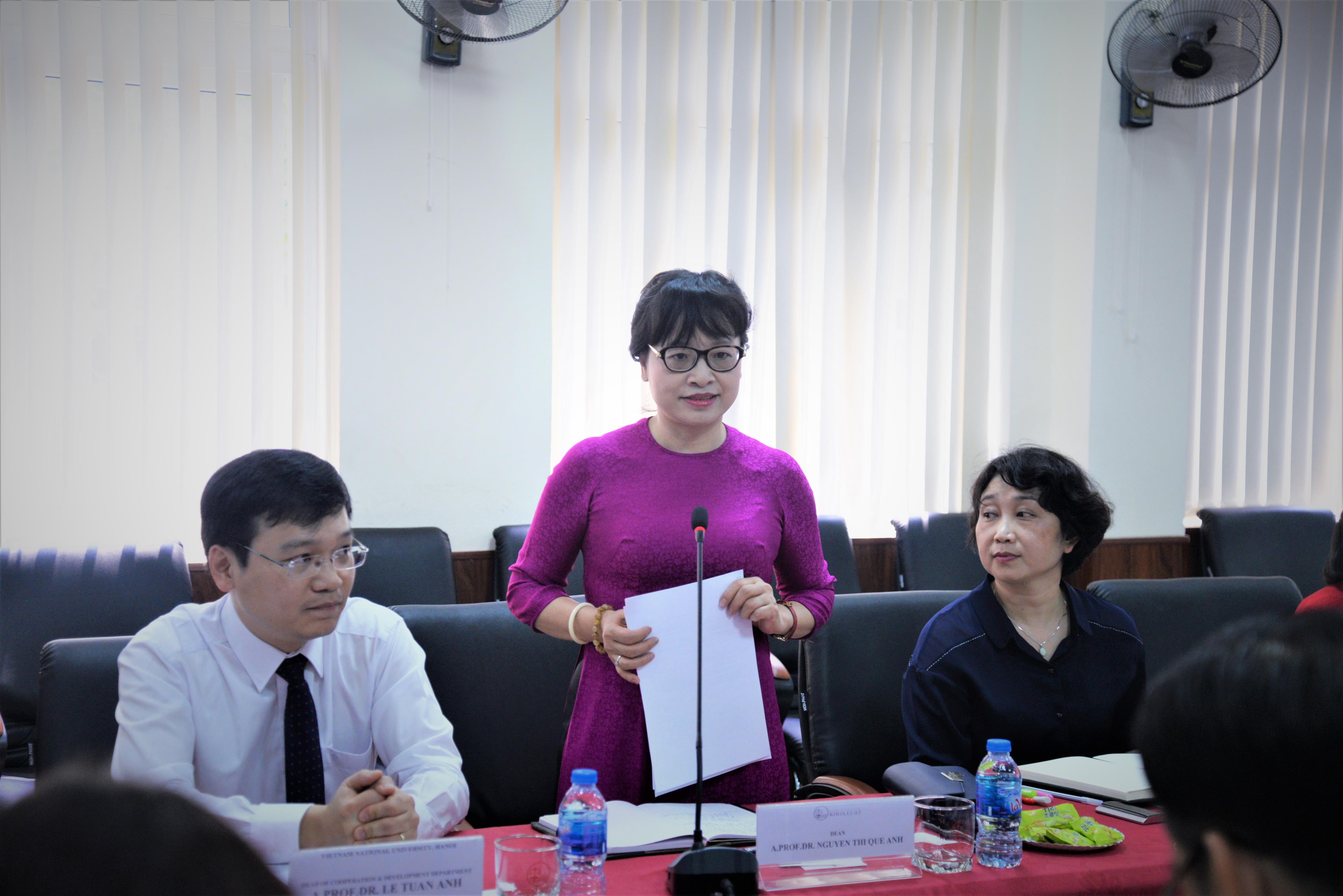 Tại buổi tiếp, PGS.TS. Nguyễn Thị Quế Anh bày tỏ vinh dự được đón tiếp đoàn cấp cao Hungary tới thăm và làm việc với Khoa Luật. PGS.TS. Nguyễn Thị Quế Anh đã giới thiệu khái quát quá trình hình thành và phát triển cũng như các hoạt động đào tạo và nghiên cứu mà Khoa đã, đang triển khai, đồng thời mong muốn phát triển quan hệ hợp tác giữa hai bên trong đào tạo, nghiên cứu khoa học pháp lý.