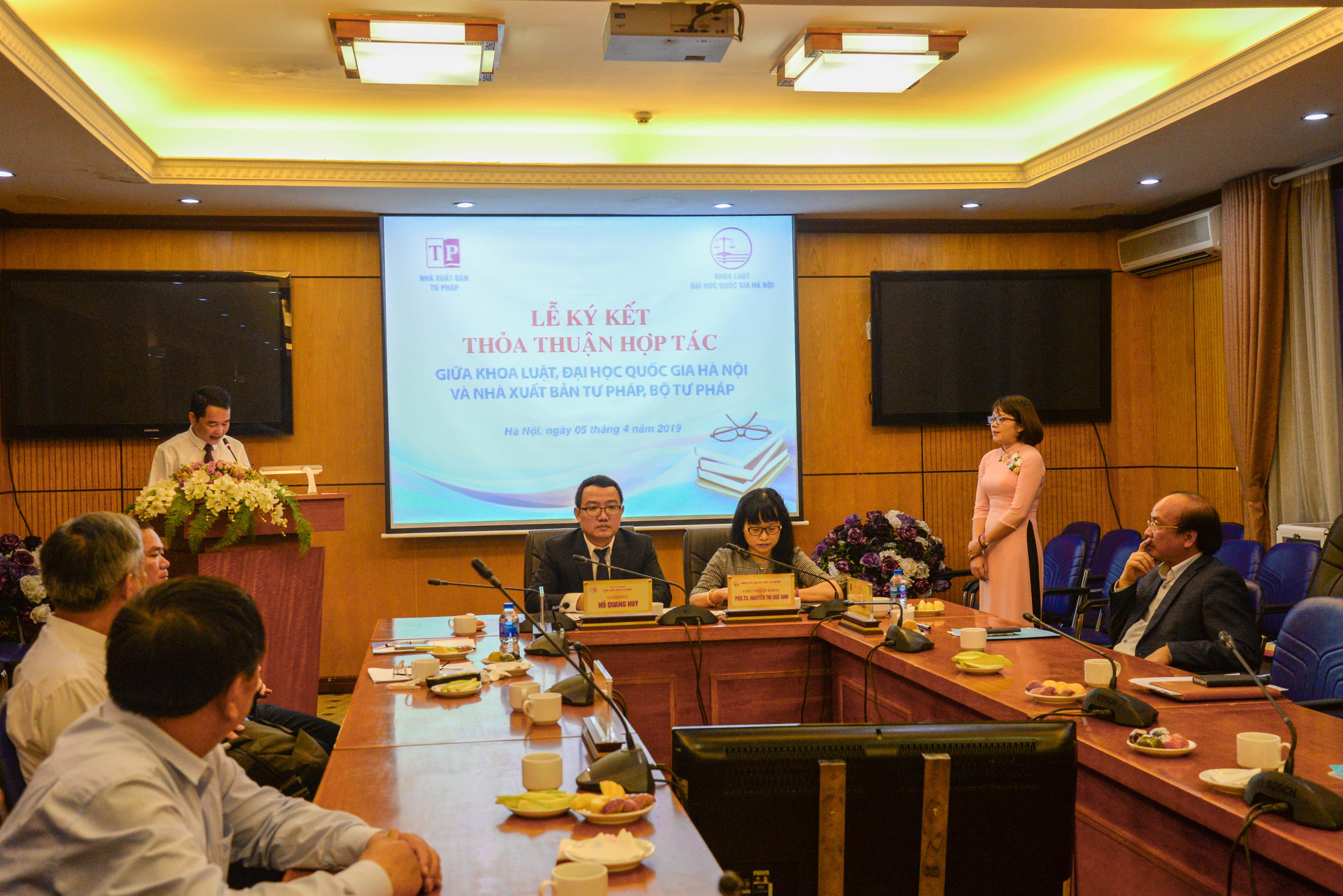 Ngày 05/4/2019, tại Trụ sở Bộ Tư pháp, Khoa Luật, Đại học Quốc gia Hà Nội (ĐHQGHN) và Nhà xuất bản Tư Pháp (NXB), Bộ Tư pháp đã tổ chức Lễ ký kết thỏa thuận hợp tác.