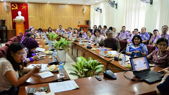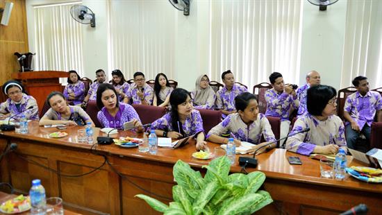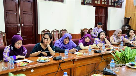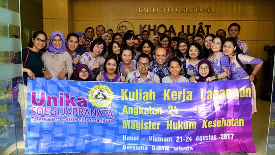 Tới dự buổi làm việc có TS. Trịnh Tiến Việt – Phó Chủ nhiệm Khoa, TS. Phan Thị Thanh Thủy – Phụ trách Phòng QLKH&HTPT. Về phía Trường Đại học Soegijapranata có TS. Lindayani – Trưởng Khoa Sau đại học và các giảng viên, học viên cao học luật của Đại học Soegijapranata.