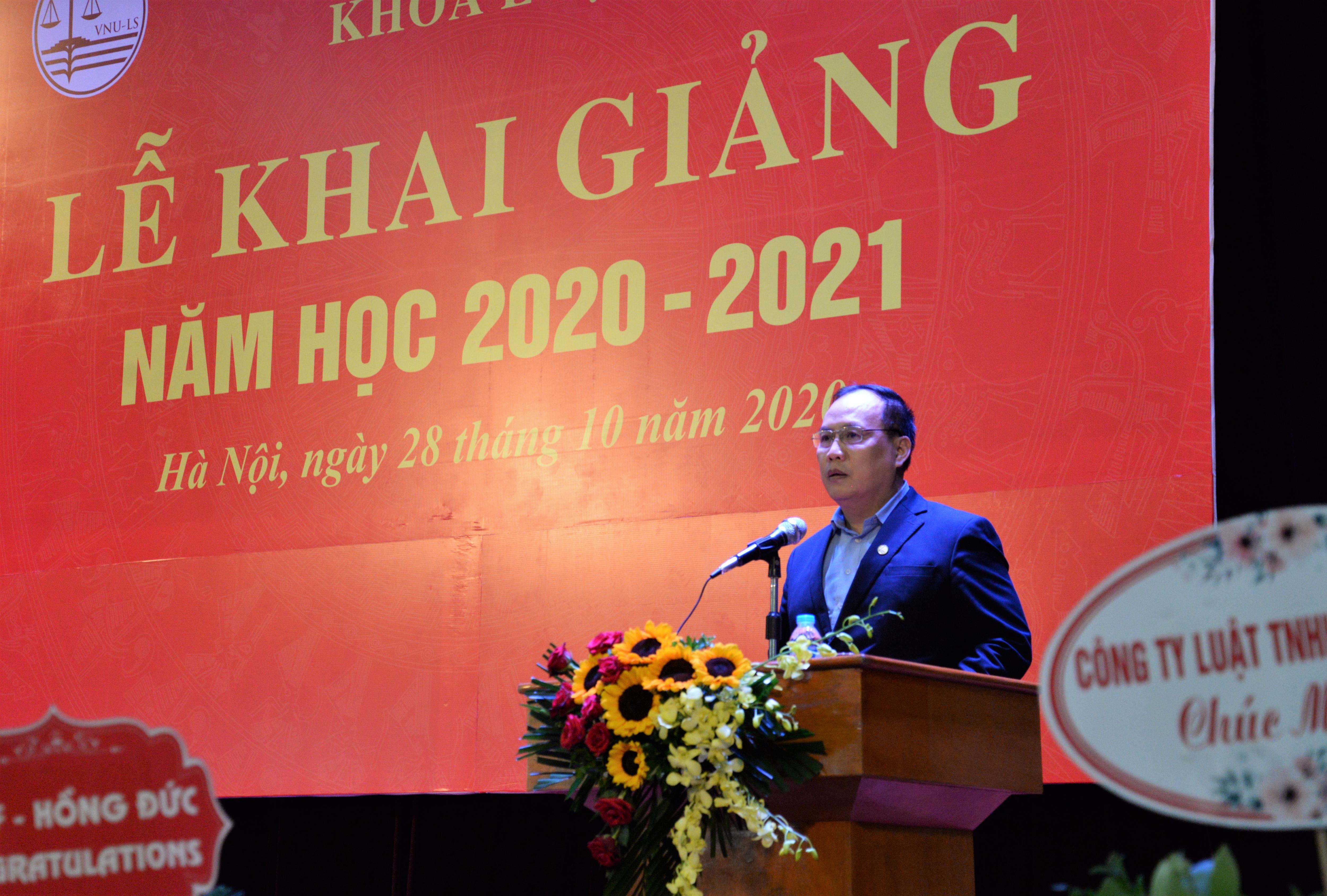 Đại diện ĐHQGHN, GS.TSKH. Nguyễn Đình Đức đã gửi lời chúc mừng tới các tân sinh viên của Khoa Luật, ĐHQGHN. Vào đại học là một sự khởi đầu cho một hành trính mới đối với các em, đây là nơi không chỉ đào tạo về mặt kiến thức mà còn là nơi giúp các em trải nghiệm, rèn luyện một hành trang để trưởng thành góp phần giúp đất nước, ĐHQGHN, Khoa Luật phát triển. Thầy hi vọng, các Tân sinh viên Khóa QH – 2020 cùng với nhiệt huyết tuổi trẻ, học tập những kiến thức bổ ích để trở thành những người có ích cho xã hội.