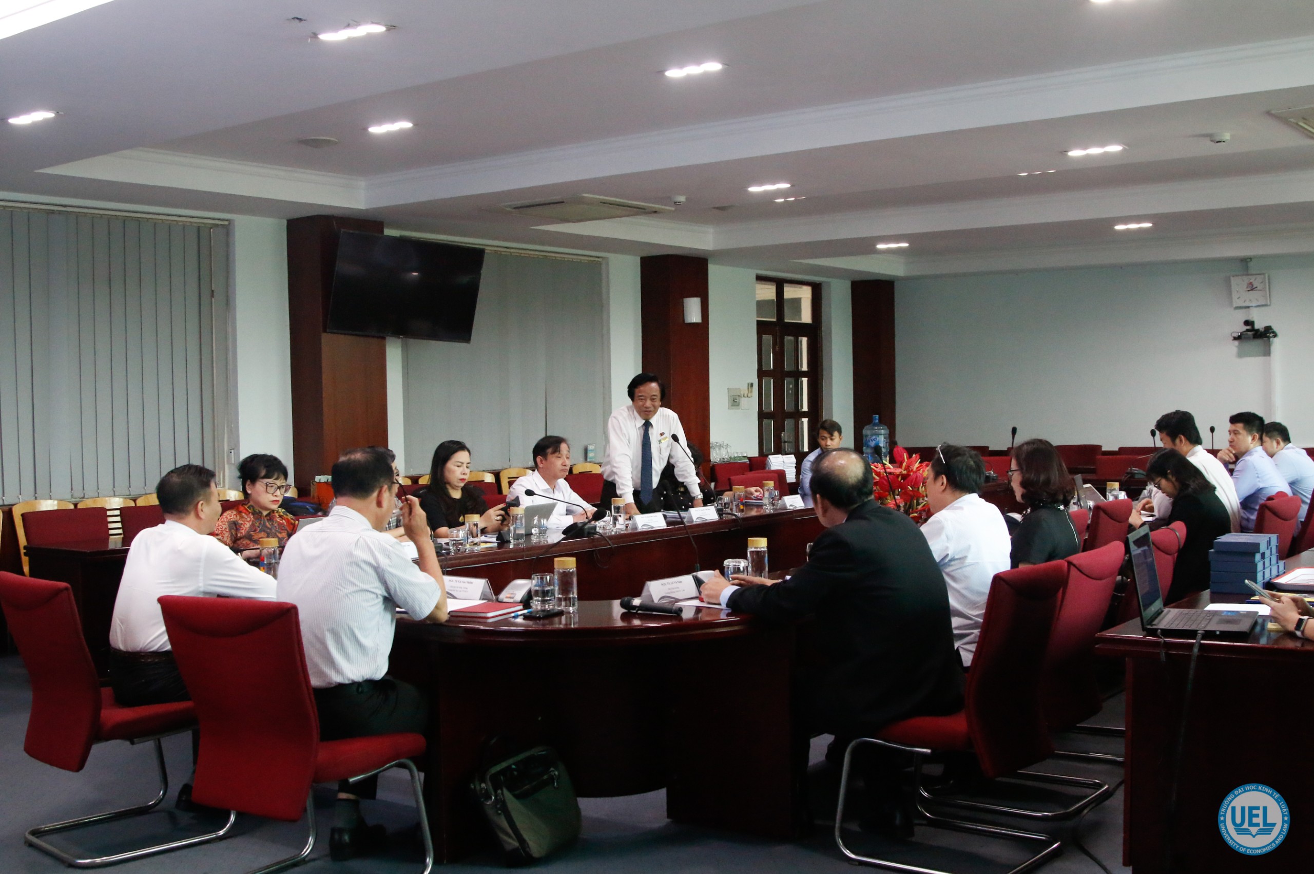 Mở đầu phiên họp, PGS.TS. Nguyễn Tiến Dũng – Hiệu trưởng Trưởng Đại học Kinh tế-Luật, ĐHQG TP. Hồ Chí Minh đã cảm ơn lãnh đạo Mạng lưới và lãnh đạo các trường đại học luật đã đồng ý chọn Trường Đại học Kinh tế-Luật làm địa điểm họp Ban Điều hành theo đề xuất từ phía Nhà trường và khẳng định đây là vinh dự cho Nhà trường nhân dịp kỷ niệm trọng thể 20 năm ngày thành lập. PGS cũng kính đề nghị Mạng lưới dành sự quan tâm, hỗ trợ Trường Kinh tế-Luật để cùng nhau giải quyết những vấn đề phát sinh trong bối cảnh thay đổi mạnh mẽ của giáo dục đại học đang diễn ra ở Việt Nam. Nhiều vấn đề trong số đó không một cơ sở nào tự giải quyết được và lúc này sứ mệnh, tiếng nói của Mạng lưới đóng vai trò rất quan trọng.