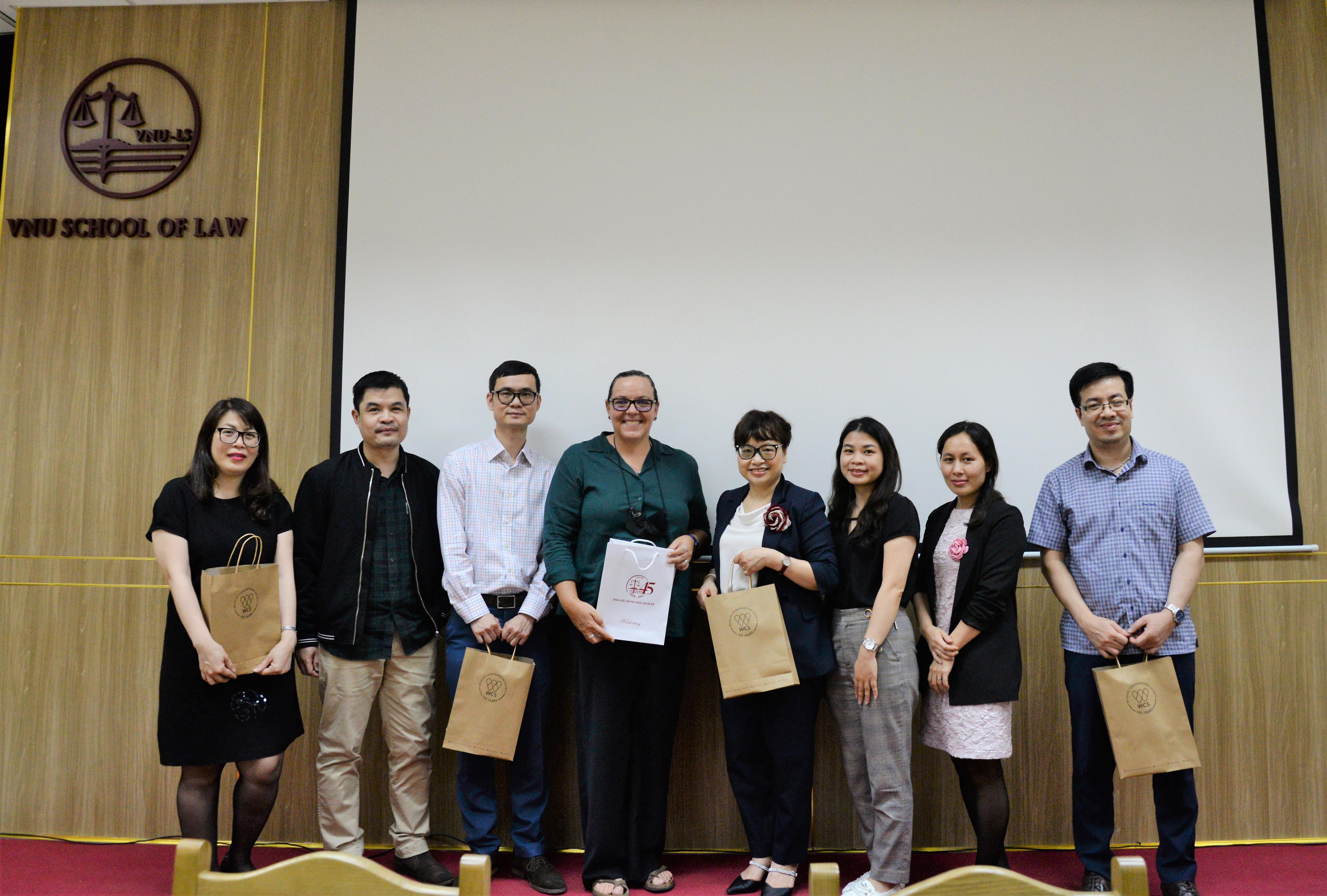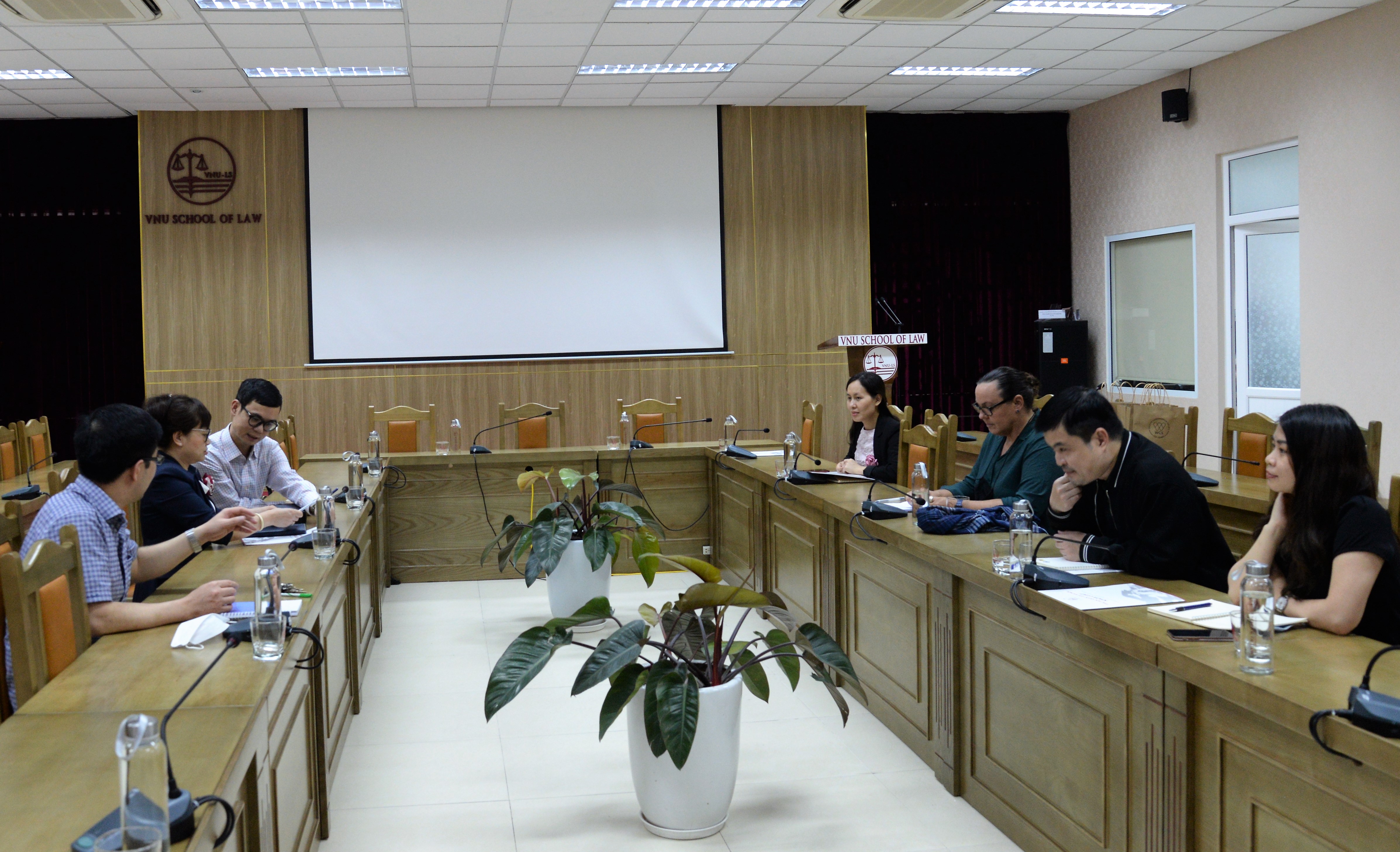 Tham gia tiếp đón và làm việc với Đoàn đại diện của Tổ chức, về phía Khoa Luật có PGS.TS. Nguyễn Thị Quế Anh – Chủ nhiệm Khoa, TS. Mai Văn Thắng – Trưởng Phòng QLKH&HTPT, TS. Bùi Tiến Đạt – Phó Trưởng Phòng QLKH&HTPT, TS. Lê Lan Chỉ – Phụ trách Bộ môn Tư pháp Hình sự.