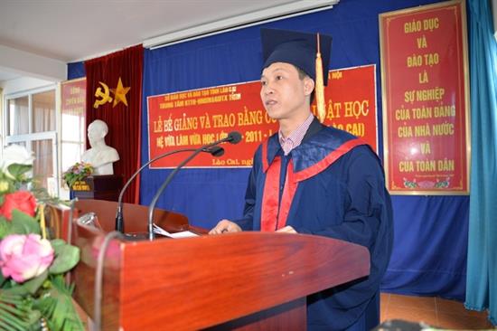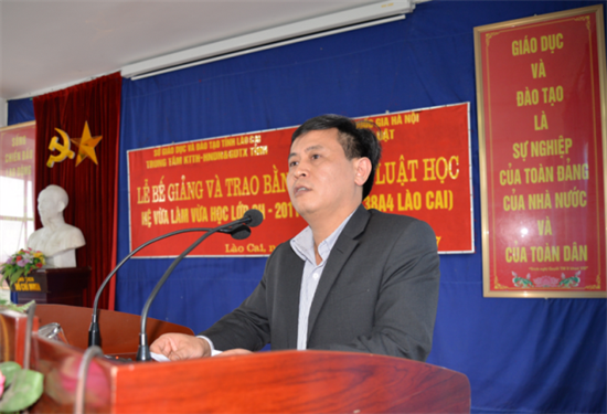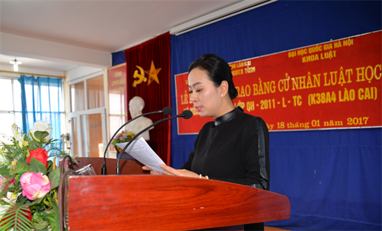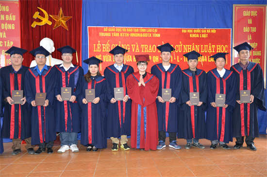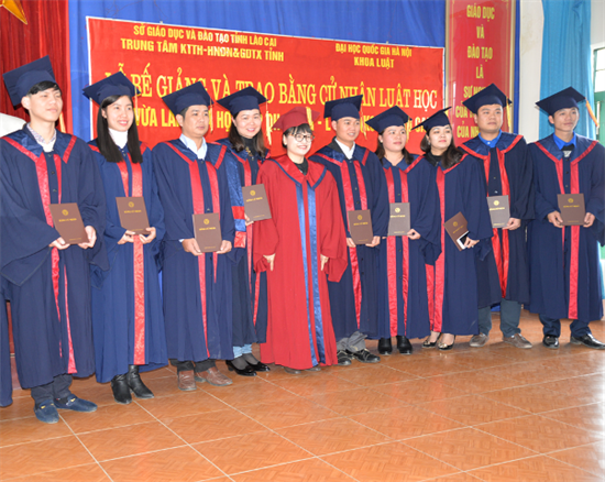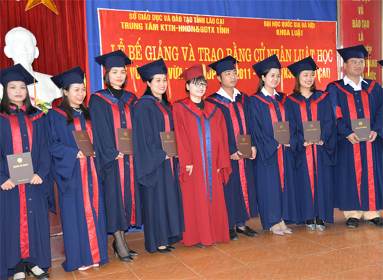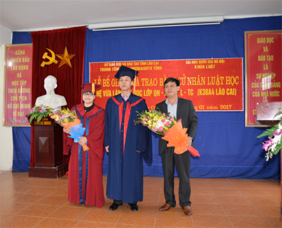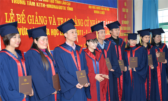 Chiều ngày 18/01/2017, Khoa Luật, Đại học Quốc gia Hà Nội (ĐHQGHN) đã phối hợp với Trung tâm HNDN-GDTX tỉnh Lào Cai long trọng tổ chức Lễ Bế giảng và trao bằng cử nhân luật học, hệ vừa làm vừa học, lớp QH-2011-L-TC (K38A4).
