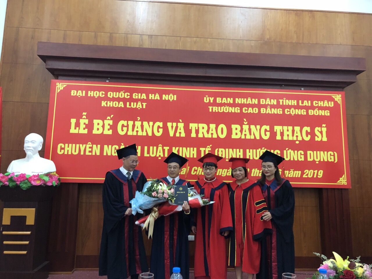 Ngày 29/6/2019, Khoa Luật, Đại học Quốc gia Hà Nội (ĐHQGHN) đã tổ chức Lễ bế giảng và trao bằng thạc sĩ cho 25 học viên chuyên ngành Luật Kinh tế QH2016 (theo định hướng ứng dụng) tại trường Cao đẳng Cộng đồng Lai Châu.