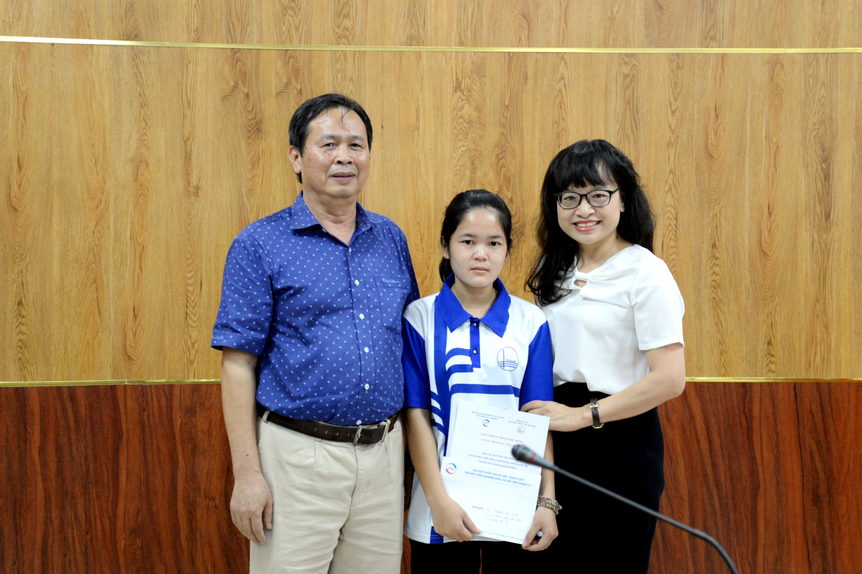 Em Nguyễn Lữ Quỳnh Anh – một trong những sinh viên được nhận học bổng đã gửi lời cám ơn chân thành tới Khoa và Trung tâm và thay mặt các bạn sinh viên nhận học bổng xin hứa sẽ nỗ lực hơn nữa trong học tập, rèn luyện, trang bị hành trang vững chắc để có thể cống hiến dựng xây quê hương, đất nước.