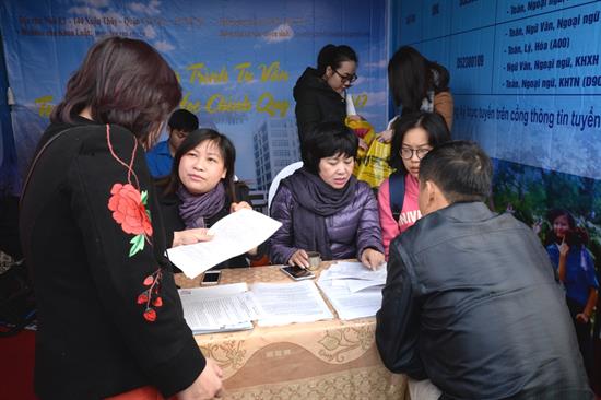 Tại gian tư vấn của Khoa Luật, ĐHQGHN, đại diện Ban Chủ nhiệm, cán bộ của Phòng Quản lý Đào tạo và các sinh viên của Khoa đã tận tình cung cấp các thông tin cho thí sinh và phụ huynh như thông tin về đào tạo bằng kép, chỉ tiêu tuyển sinh các ngành, điểm chuẩn của Khoa qua các năm và phương thức thi năm nay. Điểm thay đổi với trong kỳ thi tuyển sinh năm nay của ĐHQGHN nói chung, Khoa Luật nói riêng là thí sinh sẽ được xét tuyển theo 03 hình thức: