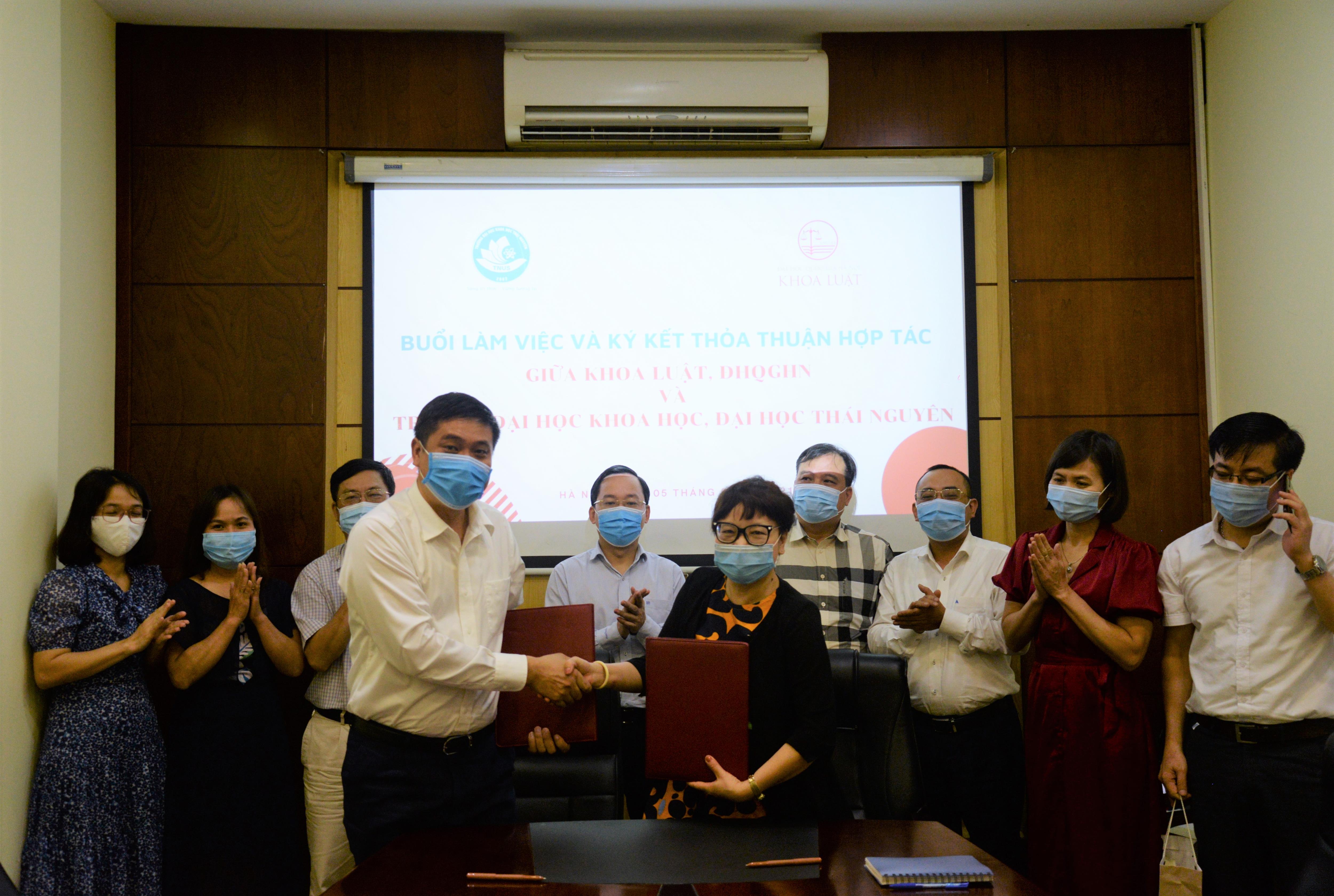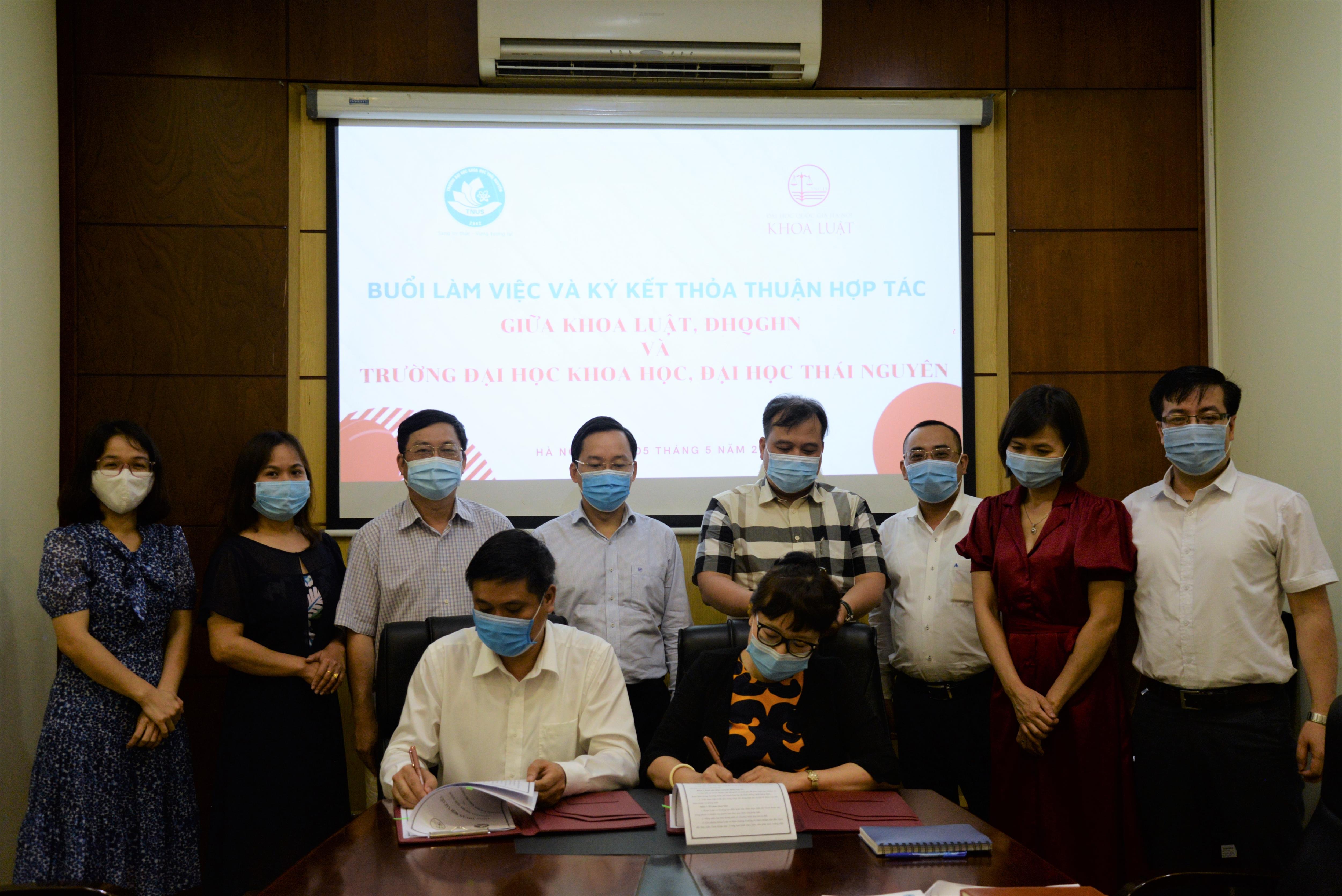 Ngày 05/5/2021, Khoa Luật, Đại học Quốc gia Hà Nội (ĐHQGHN) và Trường Đại học Khoa học, Đại học Thái Nguyên đã có buổi làm việc và ký kết Thỏa thuận hợp tác.
