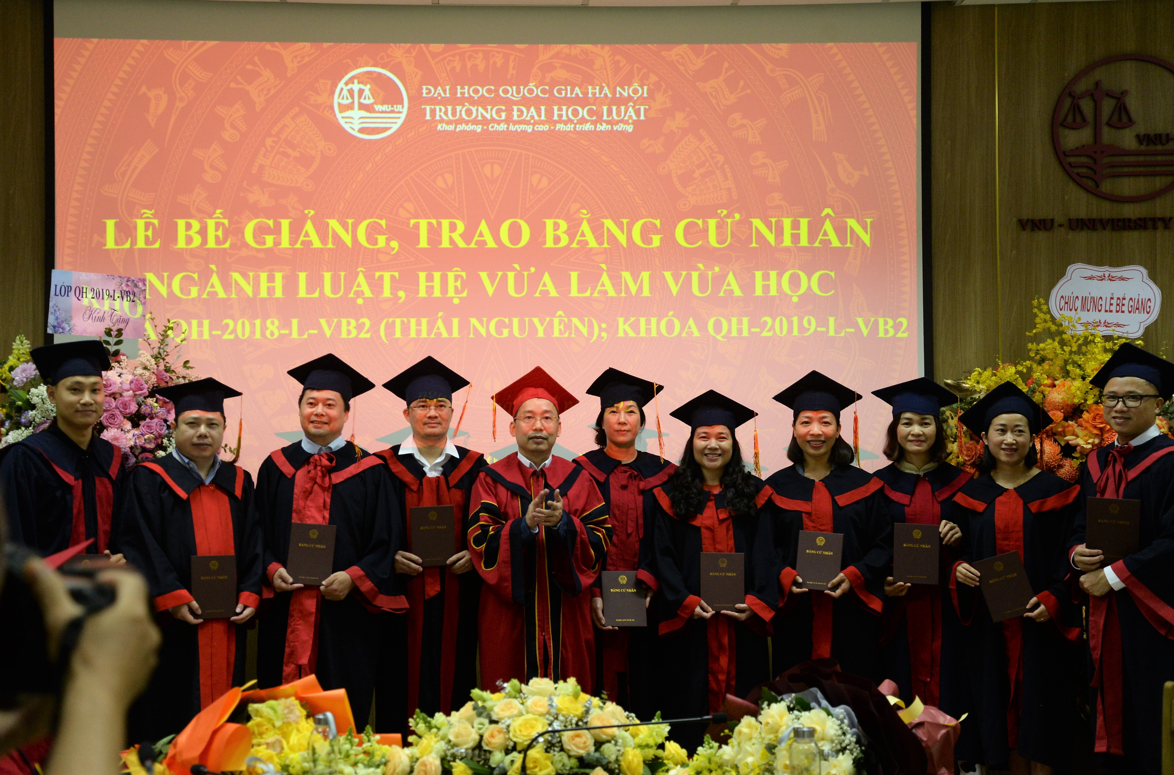 Chiều ngày 19/4/2023, Trường Đại học Luật, Đại học Quốc gia Hà Nội (ĐHQGHN) đã long trọng tổ chức Lễ Bế giảng và trao bằng tốt nghiệp cho 71 học viên ngành Luật học khóa QH – 2018 – L – VB2 – VLVH đào tạo tại Thái Nguyên và khóa QH – 2019 – L – VB2 – VLVH đào tạo tại Trường.