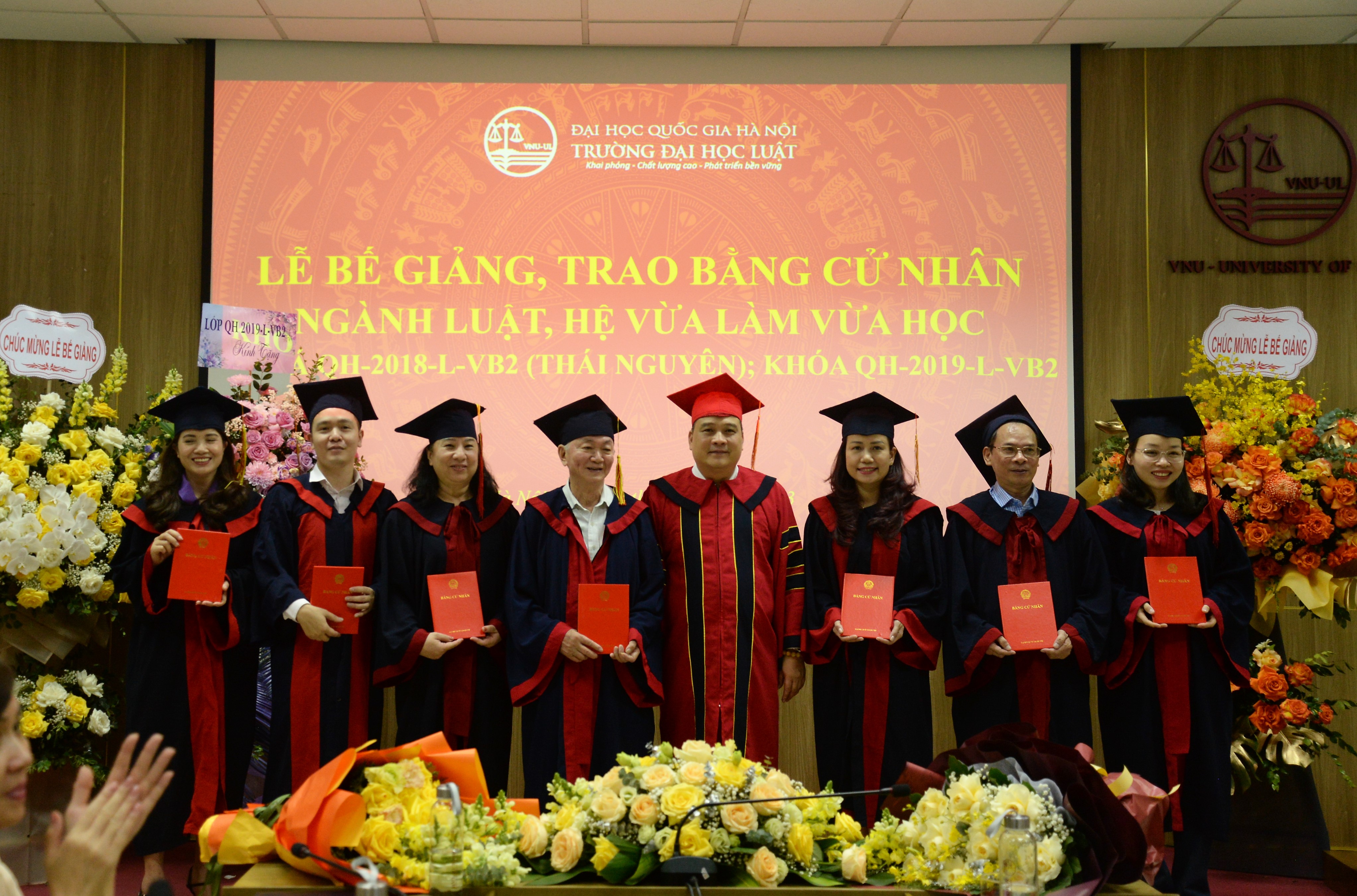 Chiều ngày 19/4/2023, Trường Đại học Luật, Đại học Quốc gia Hà Nội (ĐHQGHN) đã long trọng tổ chức Lễ Bế giảng và trao bằng tốt nghiệp cho 71 học viên ngành Luật học khóa QH – 2018 – L – VB2 – VLVH đào tạo tại Thái Nguyên và khóa QH – 2019 – L – VB2 – VLVH đào tạo tại Trường.
