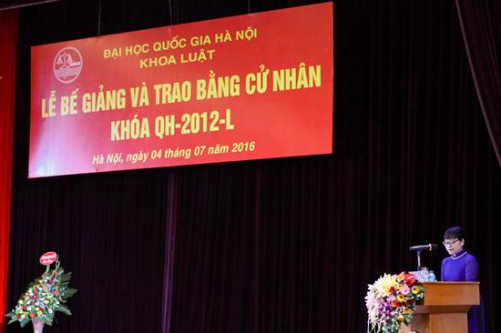 Phát biểu tại buổi Lễ, thay mặt Ban Chủ nhiệm Khoa, PGS.TS. Nguyễn Thị Quế Anh đã gửi lời chúc mừng tới các tân cử nhân của khóa QH – 2012 – L: “Mỗi người trong số các bạn với những hoàn cảnh riêng của