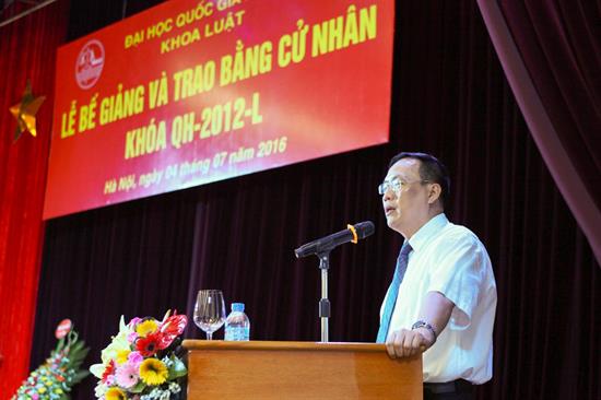 Thay mặt lãnh đạo ĐHQGHN phát biểu tại buổi Lễ, GS.TSKH. Nguyễn Đình Đức nhắn nhủ các tân cử nhân rằng: Hãy ý thức và tự hào về tấm bằng của mình, hãy học tập và rèn luyện nhiều hơn nữa để xứng đáng với những gì ĐHQGHN nói chung và Khoa Luật nói riêng đã trao cho các bạn. Tấm bằng ngày hôm nay là sự khởi đầu, sẽ có nhiều thử thách ở phía trước, sẽ có những thành công, những thất bại nhưng hy vọng ngày hôm nay sẽ là hành trang để các bạn vững bước đi lên.