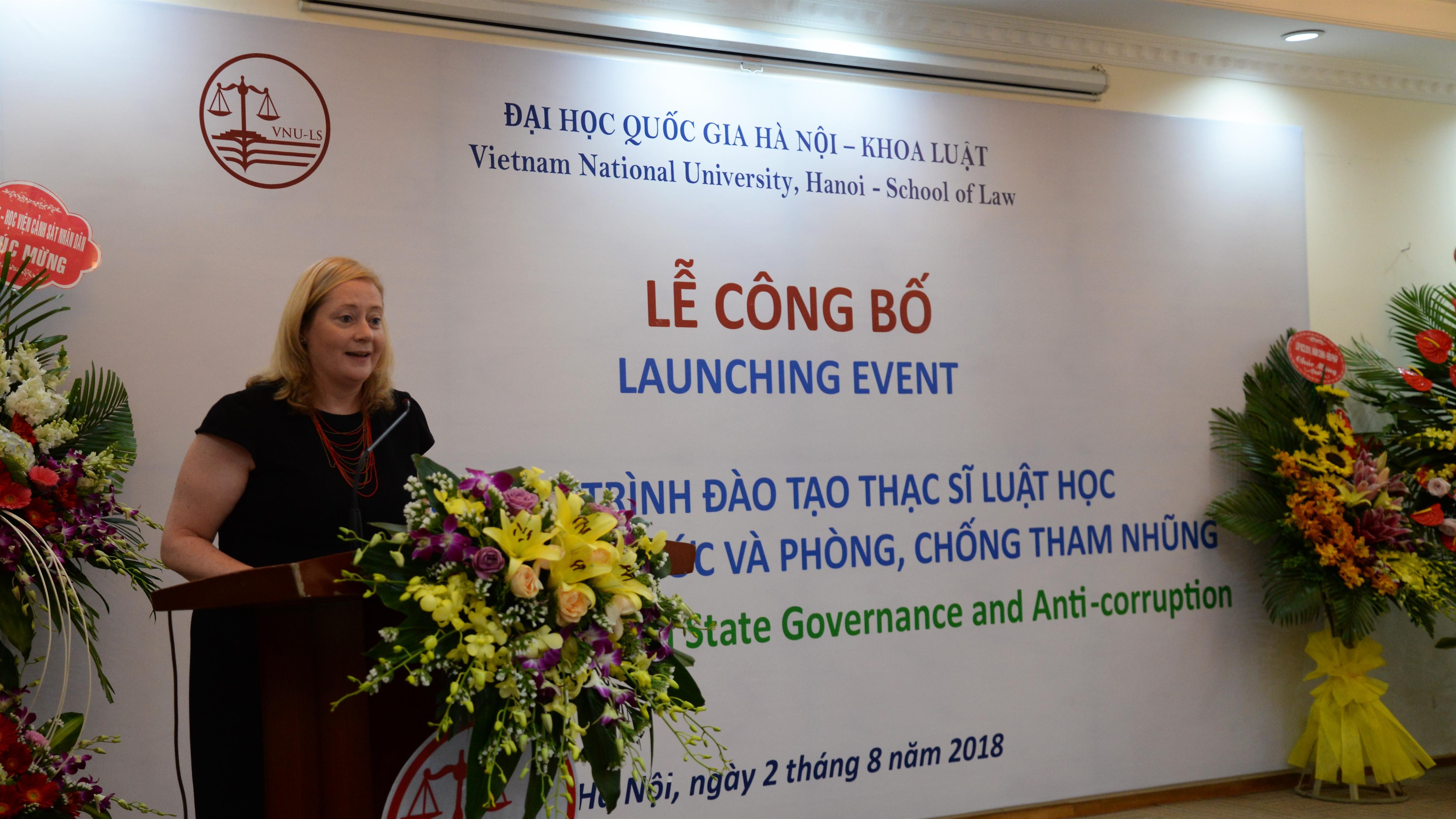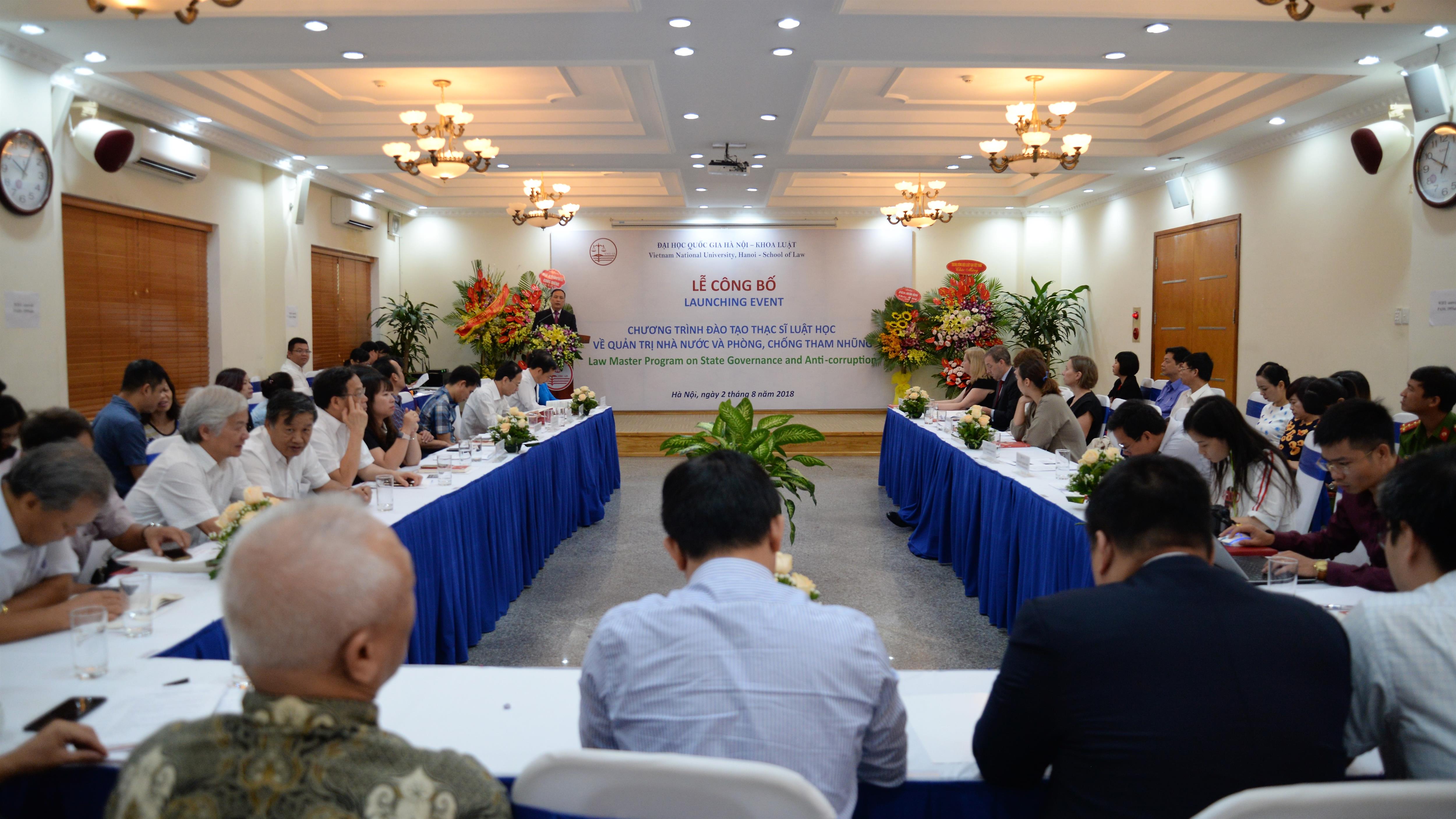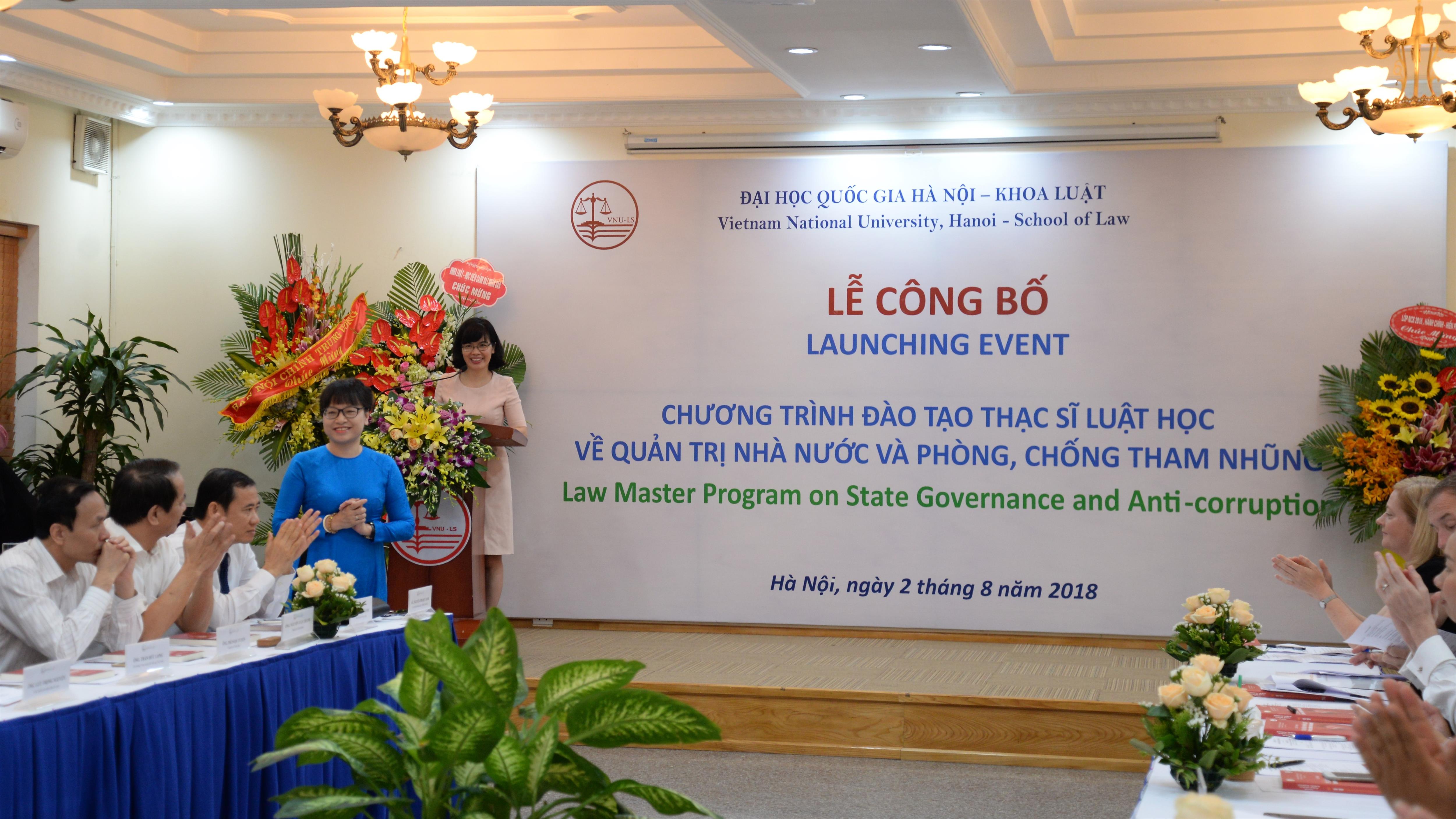 Ngày 02/8/2018, Khoa Luật, Đại học Quốc gia Hà Nội (ĐHQGHN) tổ chức Lễ công bố Chương trình đào tạo thạc sĩ luật học về Quản trị Nhà nước và phòng, chống tham nhũng (PCTN). Tới dự buổi Lễ có Bà Cait Moran – Đại sứ đặc mệnh toàn quyền Cộng hòa Ailen tại Việt Nam, Ngài Steph Lysaght – Đại diện Lâm thời Liên hiệp Vương quốc Anh và Bắc Ai len tại Việt Nam, Ông Nguyễn Thái Học – Phó Trưởng Ban Nội chính Trung Ương, Ông Nguyễn Văn Thanh – Phó Tổng Thanh tra Chính phủ, GS.TSKH. Nguyễn Đình Đức – Trưởng Ban Đào tạo ĐHQGHN, TS. Nguyễn Anh Thu – Trưởng Ban Hợp tác Phát triển ĐHQGHN. Về phía Khoa Luật có, PGS.TS. Nguyễn Thị Quế Anh – Chủ nhiệm Khoa, TS. Nguyễn Trọng Điệp – Phó Chủ nhiệm Khoa cùng đại diện ngoại giao của các nước, các Bộ, ngành, các tổ chức, các đơn vị đào tạo và nghiên cứu, các nhà khoa học và các cán bộ, giảng viên, học viên, sinh viên.