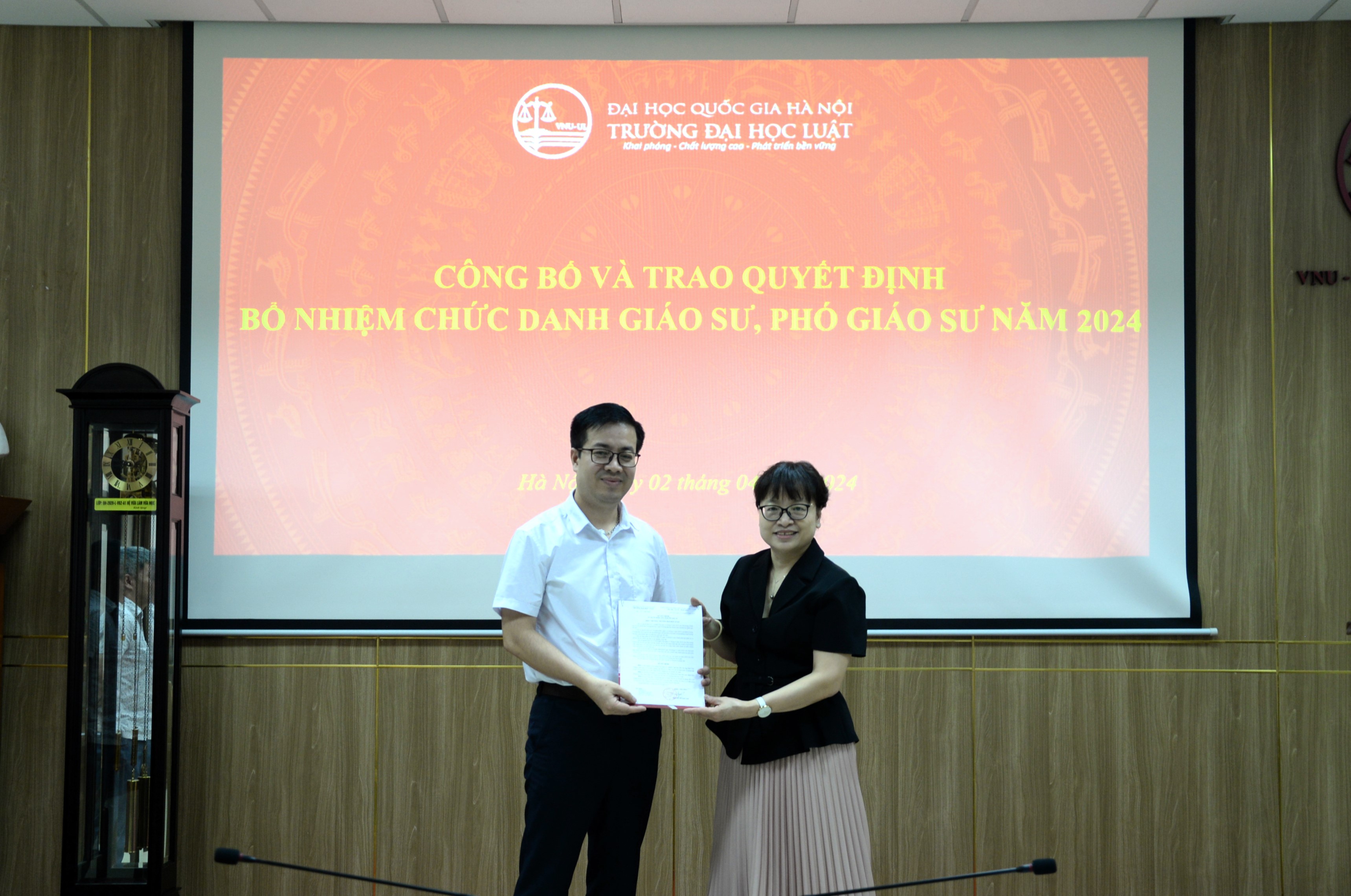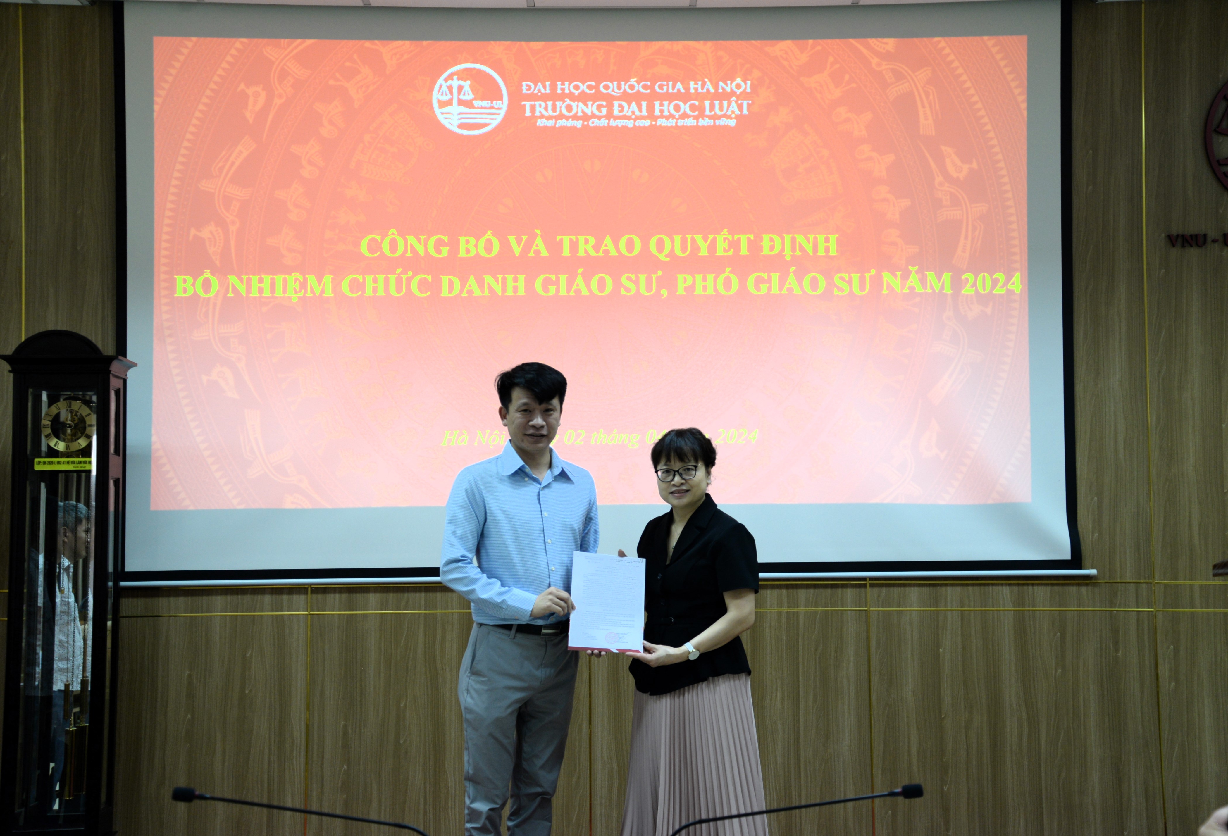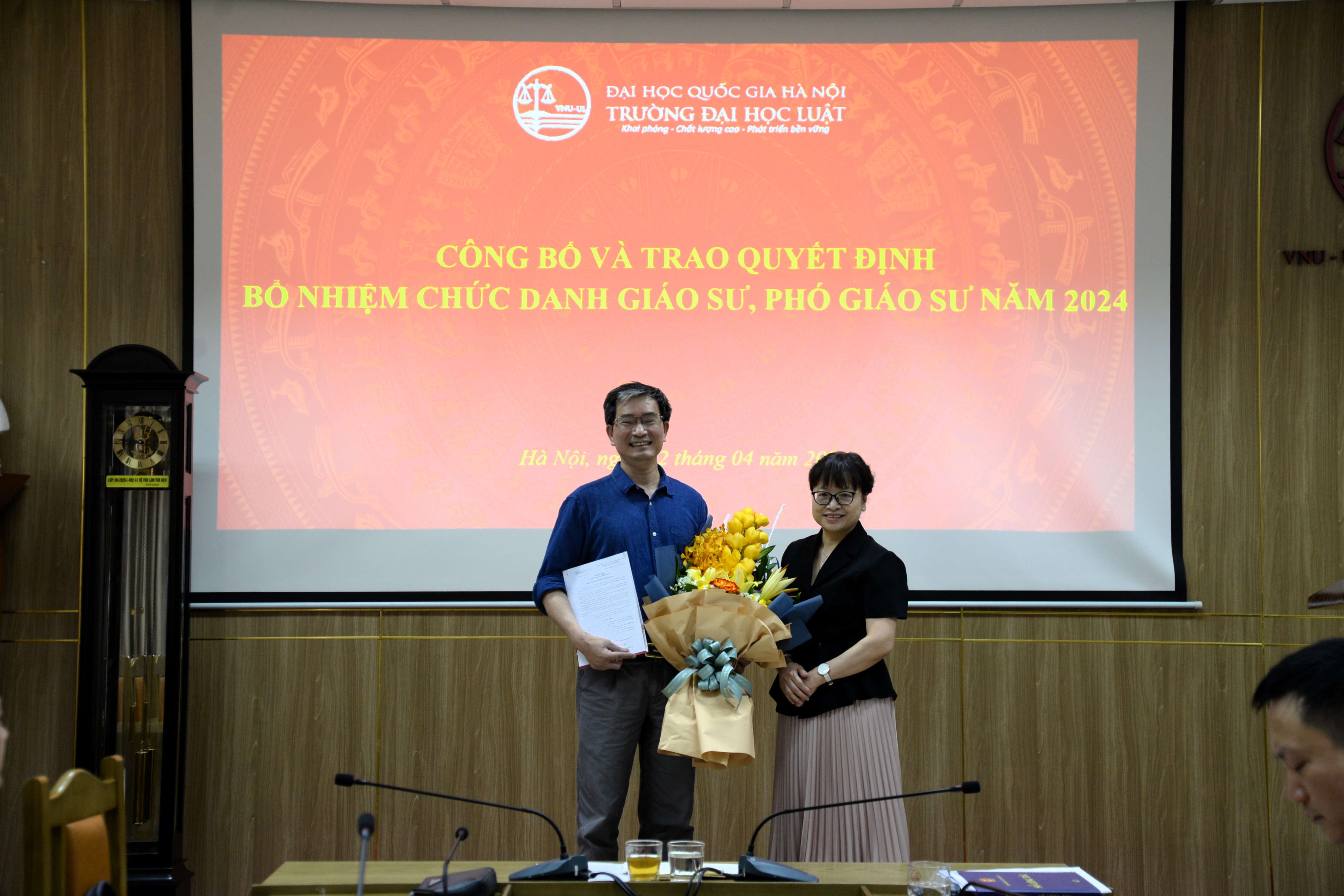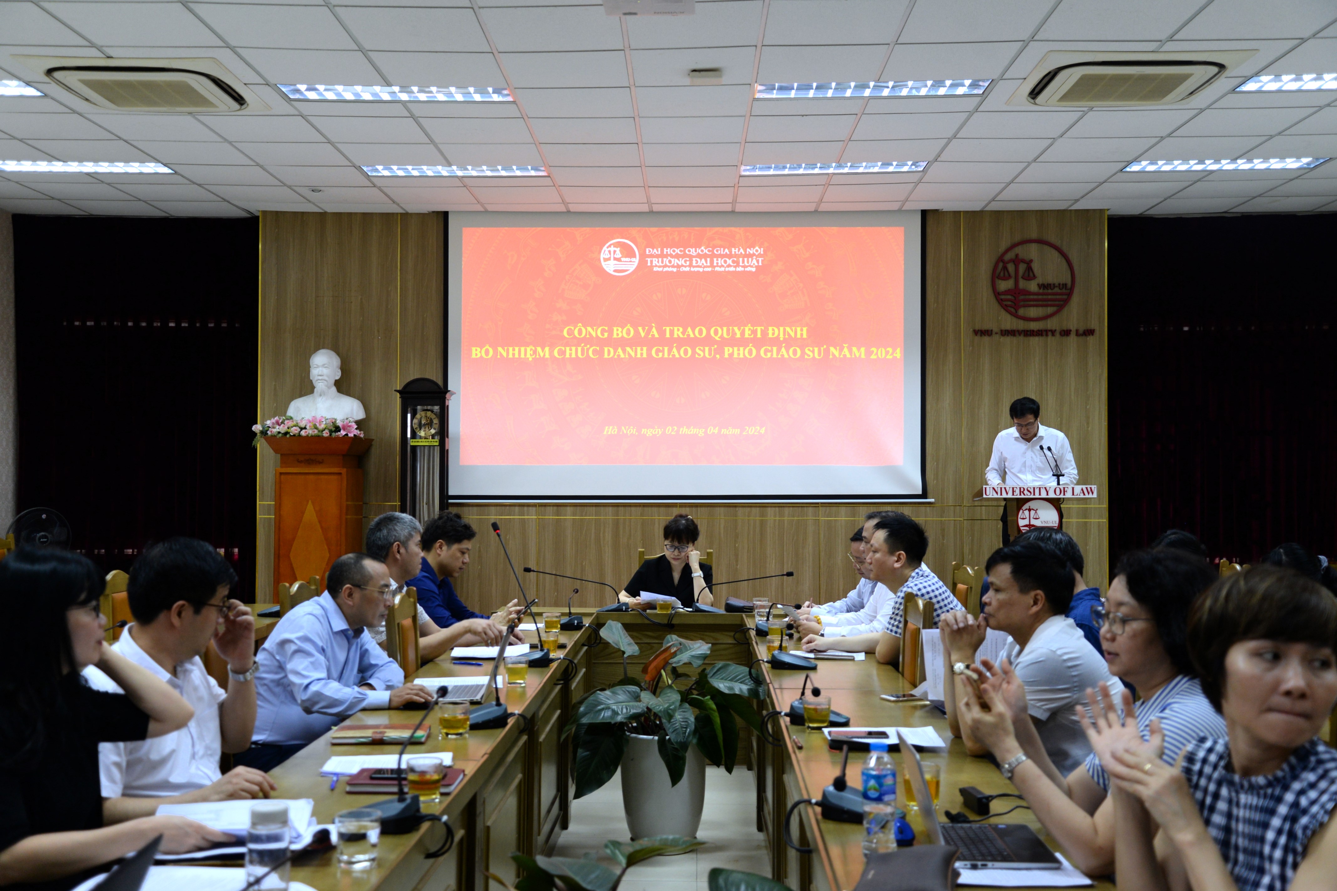 Sáng 2/4/2024, Trường Đại học Luật, ĐHQGHN đã tổ chức Lễ công bố và trao quyết định bổ nhiệm chức danh Giáo sư (GS), Phó Giáo sư (PGS) ngành Luật năm 2023.