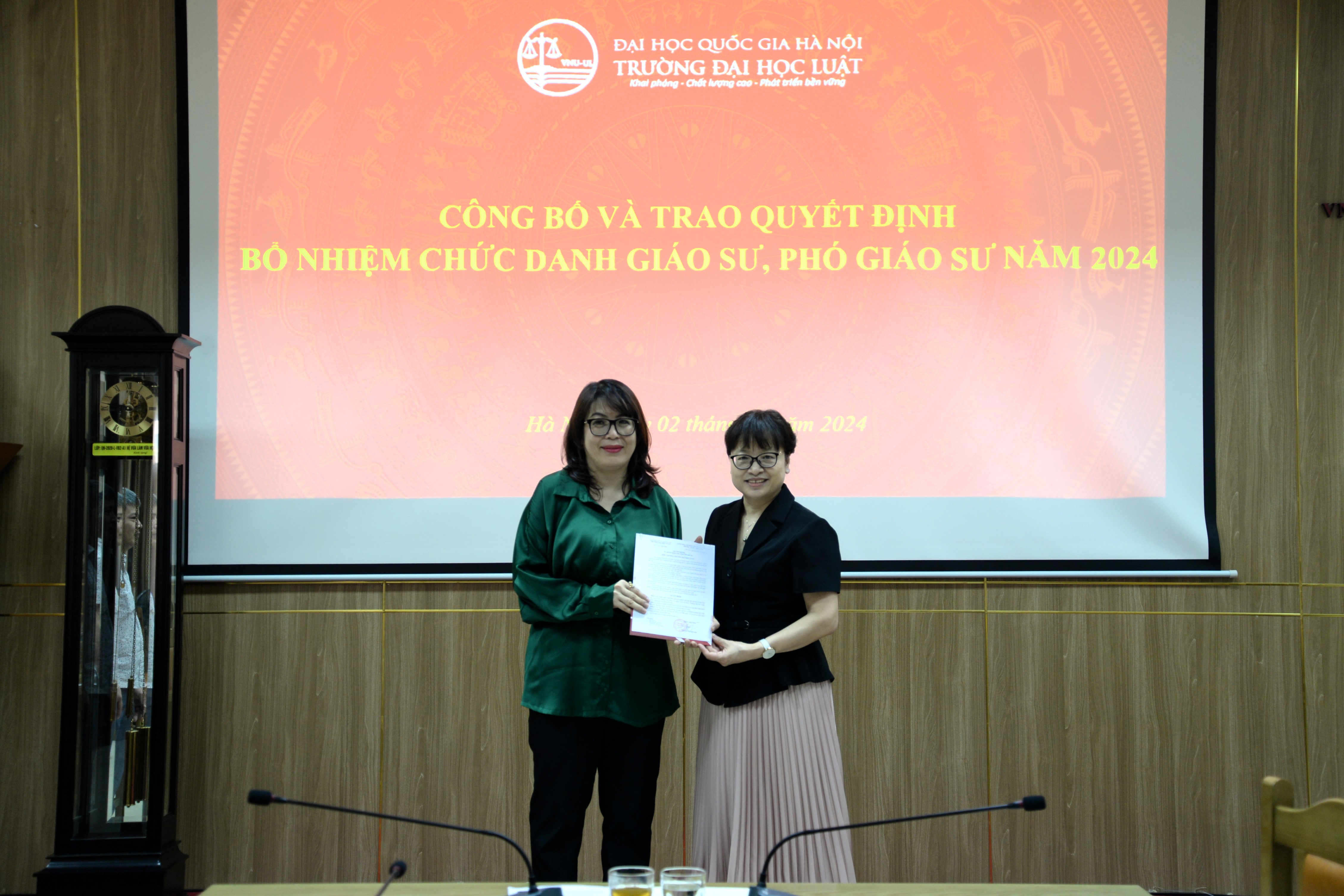 Sáng 2/4/2024, Trường Đại học Luật, ĐHQGHN đã tổ chức Lễ công bố và trao quyết định bổ nhiệm chức danh Giáo sư (GS), Phó Giáo sư (PGS) ngành Luật năm 2023.
