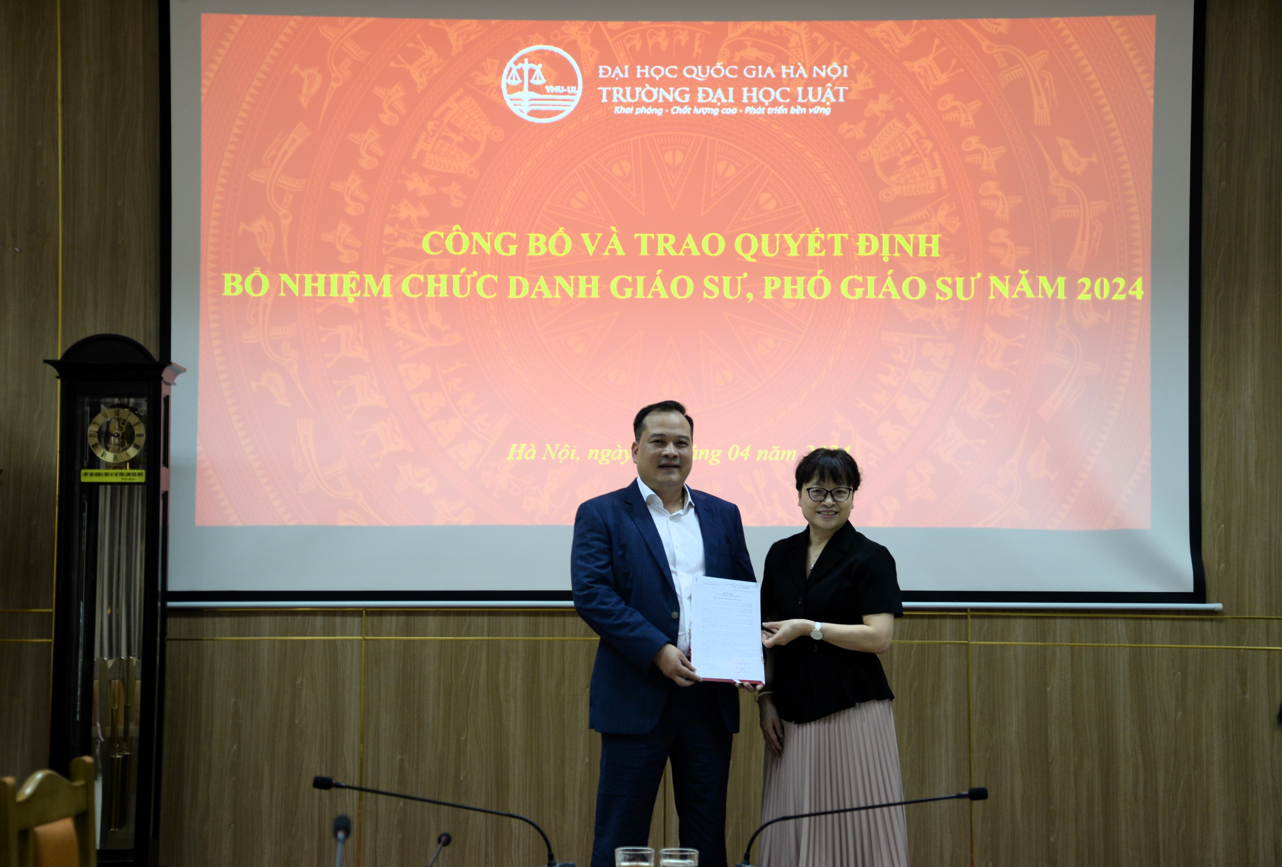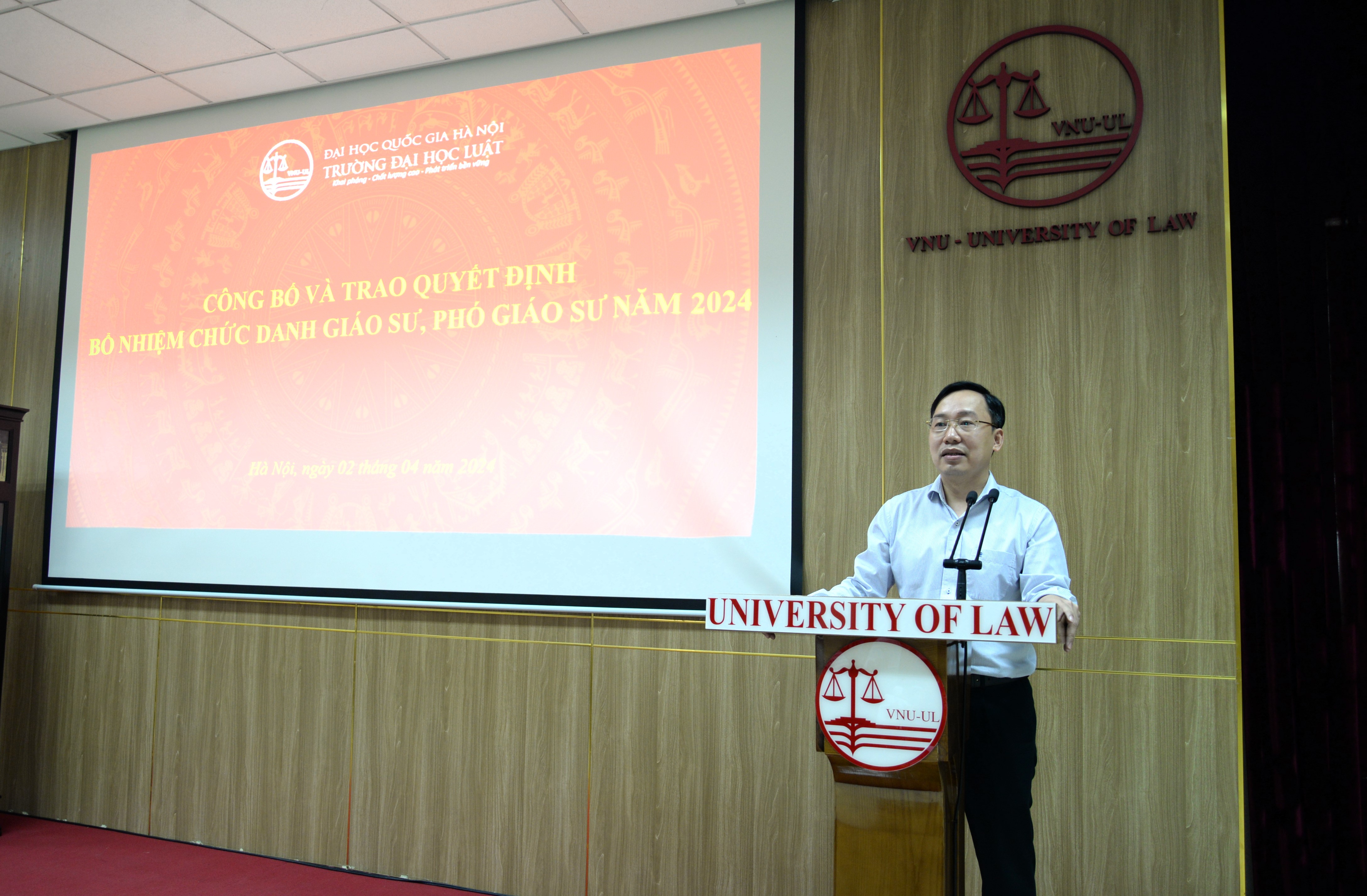 Sáng 2/4/2024, Trường Đại học Luật, ĐHQGHN đã tổ chức Lễ công bố và trao quyết định bổ nhiệm chức danh Giáo sư (GS), Phó Giáo sư (PGS) ngành Luật năm 2023.