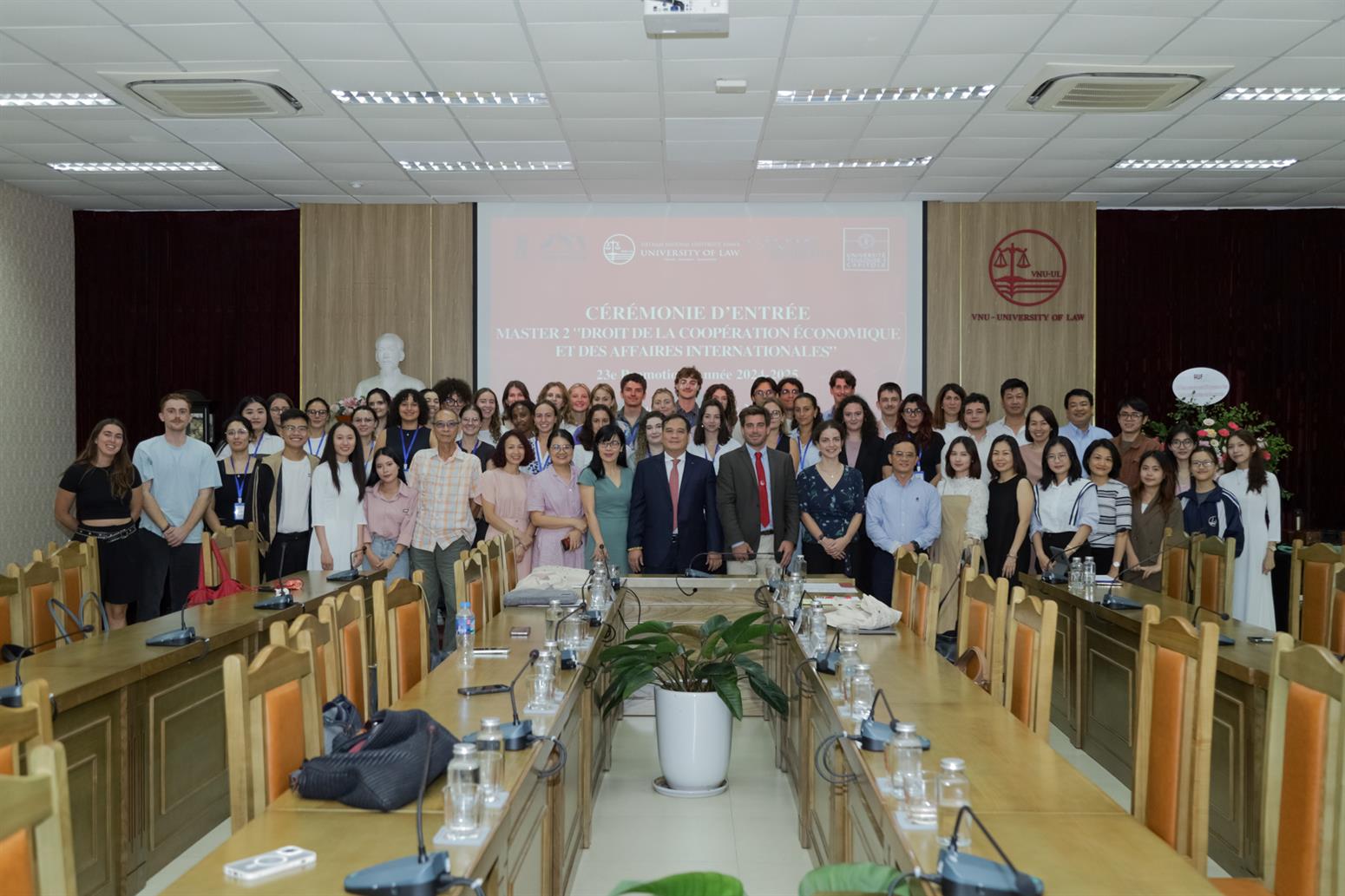 Tham dự Lễ khai giảng, về phía đơn vị đối tác có Ông Jean Sagot-Duvauroux – Giám đốc Chương trình, Ông Damien Negre – Điều phối viên Chương trình. Về phía Trường Đại học Luật, ĐHQGHN có PGS.TS. Nguyễn Trọng Điệp – Bí thư Đảng ủy, Chủ tịch Hội đồng trường, PGS.TS. Nguyễn Hoàng Anh – Phó Hiệu trưởng và đại diện lãnh đạo các đơn vị thuộc Trường.