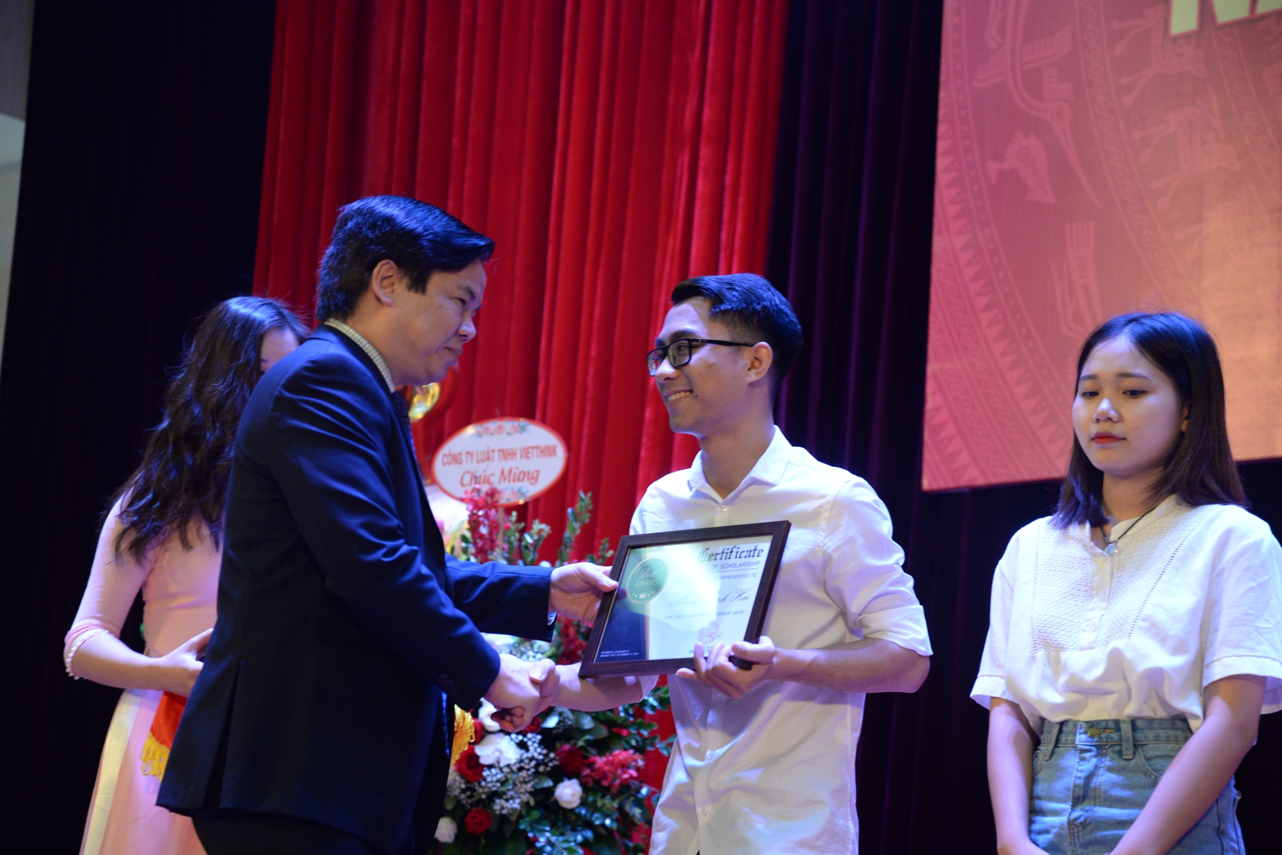 Nhân dịp này, các đối tác của Khoa Luật là Công ty đầu tư và kinh doanh vốn nhà nước và Công ty Luật Vietthinkđã trao tặng sinh viên Khoa Luật nhiều suất học bổng, với tổng trị giá 115.000.000đồng.Đây là nguồn động viên, khích lệ kịp thời dành cho sự nỗ lực phấn đấu và những thành tựu mà các em sinh viên đạt được trong năm học vừa qua. Đồng thời mong muốn các em không ngừng rèn luyện bản thân, hoàn thiện kiến thức, kỹ năng và bản lĩnh để trở thành những cán bộ quản lý, chuyên gia, luật sư giỏi của đất nước trong tương lai.