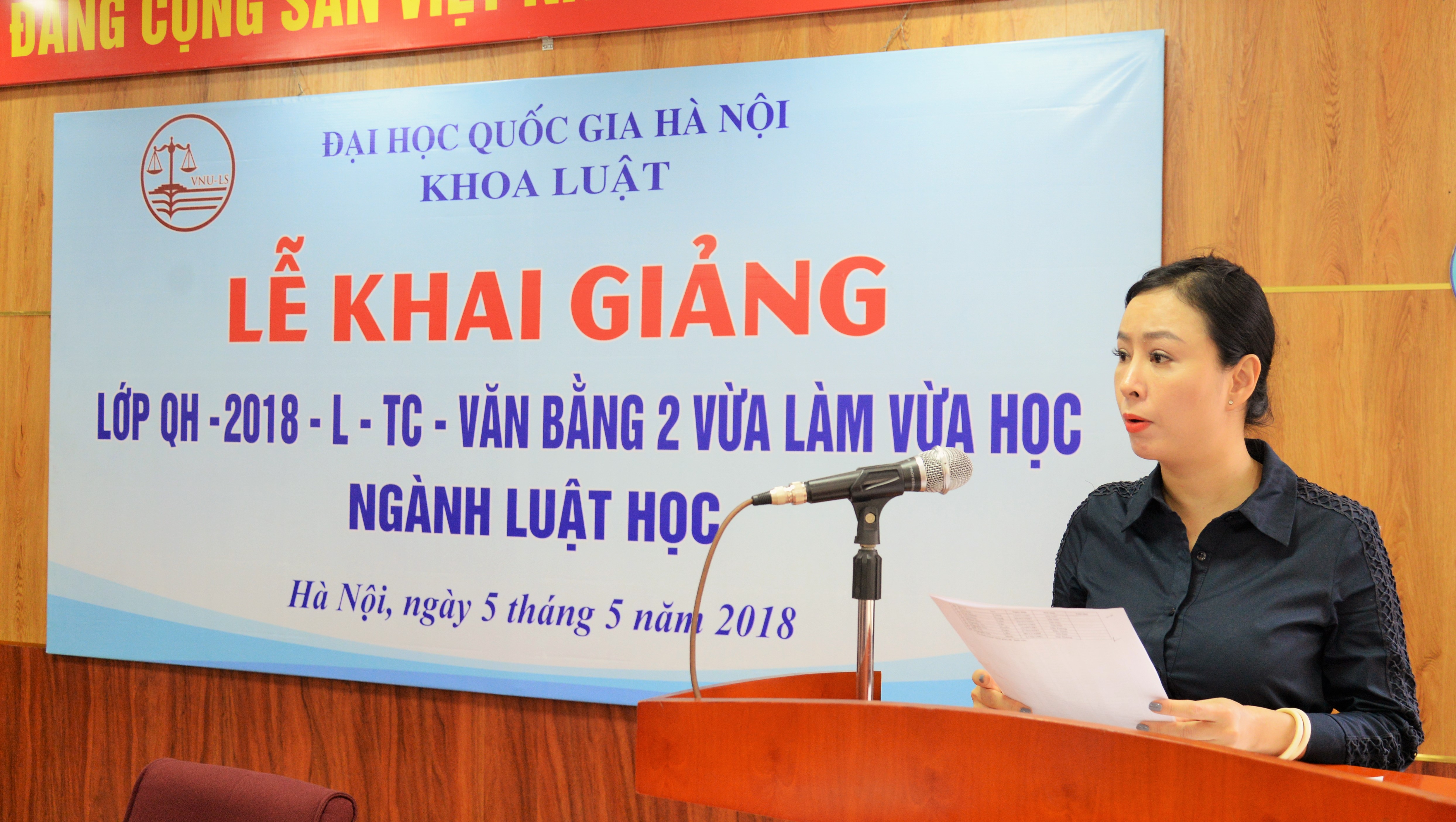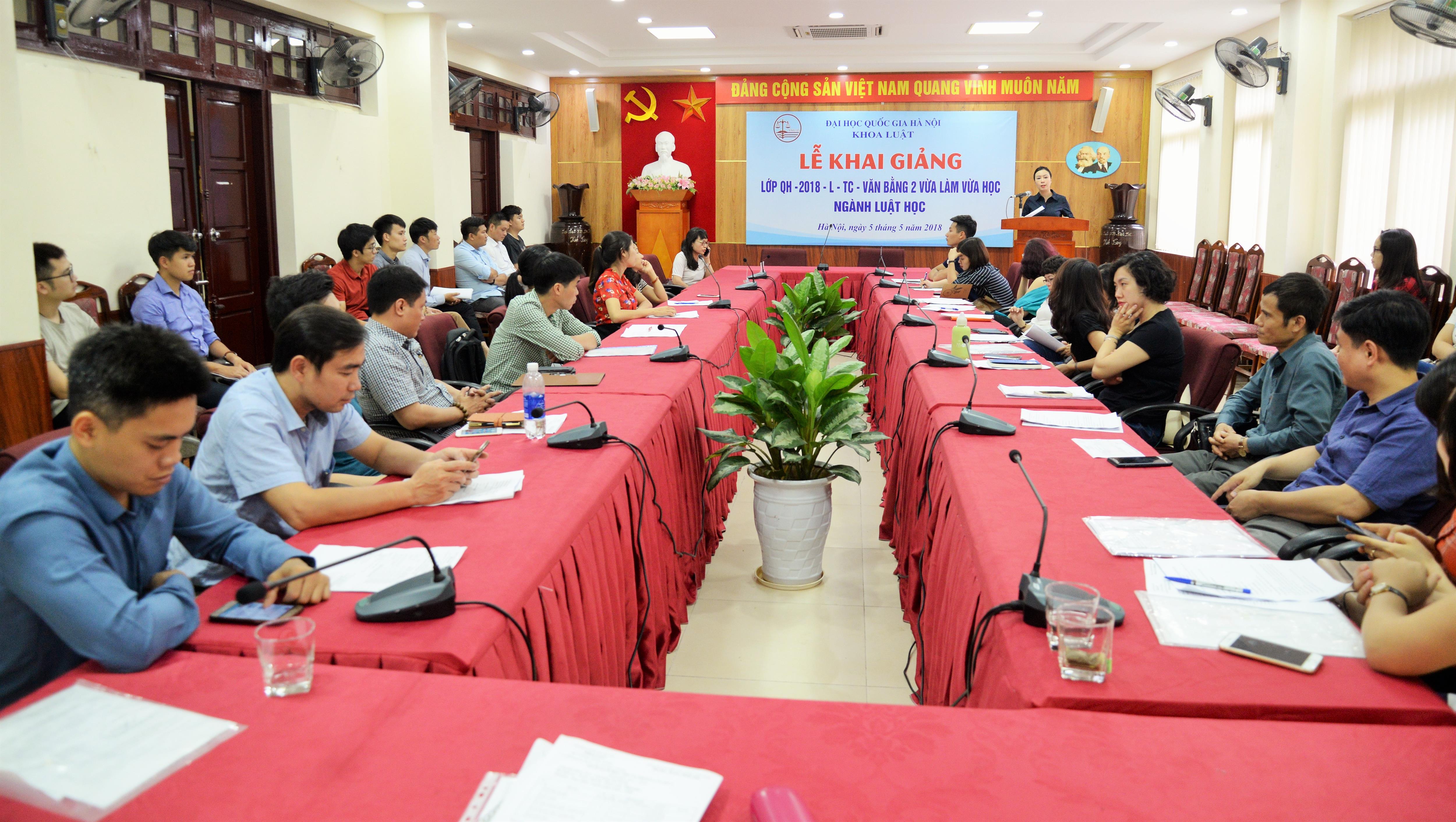Ngày 05/5/2018, Khoa Luật, Đại học Quốc gia Hà Nội (ĐHQGHN) đã tổ chức Lễ Khai giảng và nhập học lớp Văn bằng 2 vừa làm vừa học (VLVH) năm 2018.