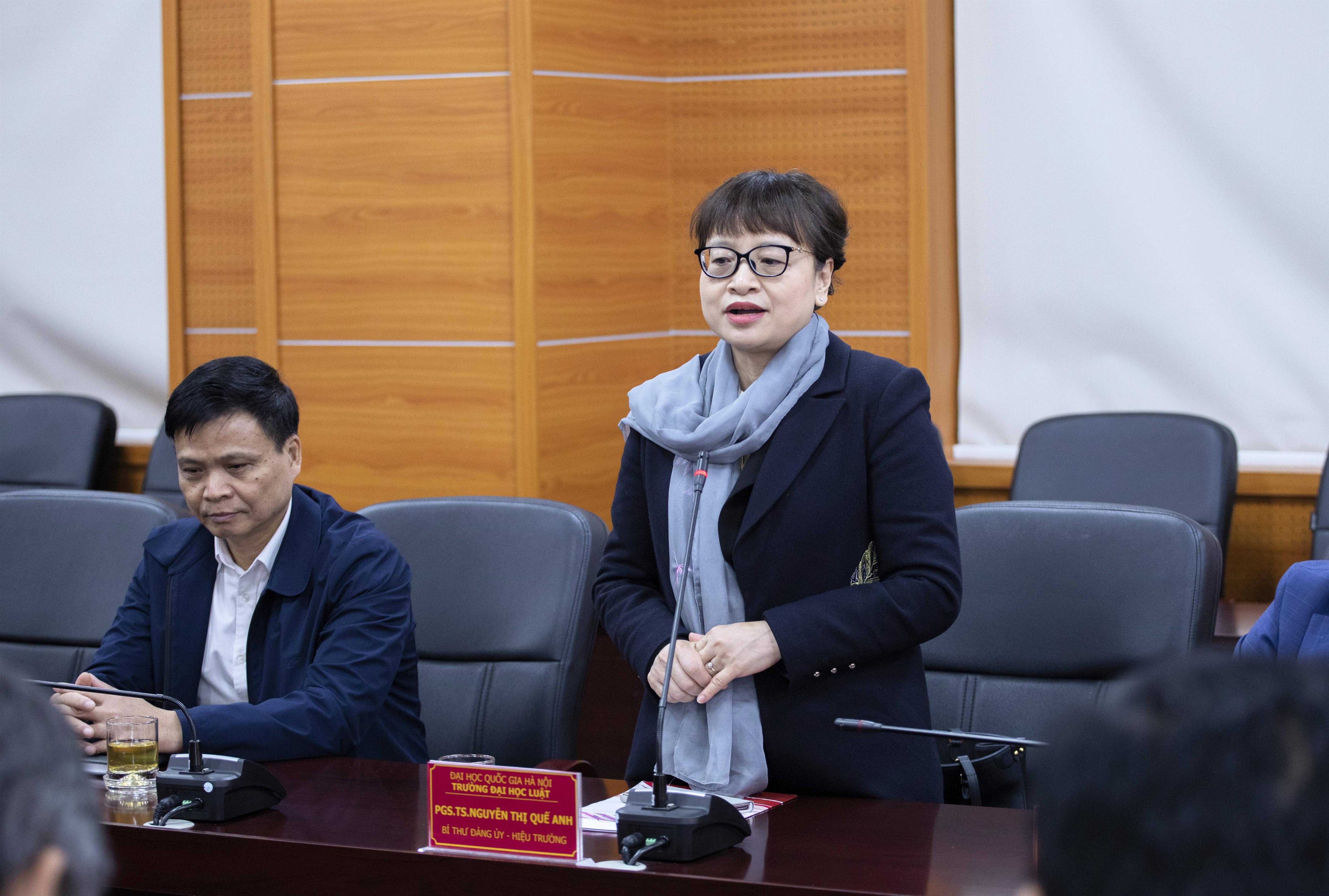 PGS.TS Nguyễn Thị Quế Anh đã gửi lời cảm ơn sự tiếp đón thịnh tình của tập thể lãnh đạo Trường Đại học Hạ Long, đồng thời bày tỏ sự ấn tượng về hệ thống cơ sở vật chất được đầu tư đồng bộ, hiện đại của Nhà trường. PGS.TS Nguyễn Thị Quế Anh tin tưởng vào tiềm năng phát triển bền vững trong hợp tác đào tạo giữa Trường Đại học Hạ Long và Trường Đại học Luật, ĐHQGHN trong tương lai.