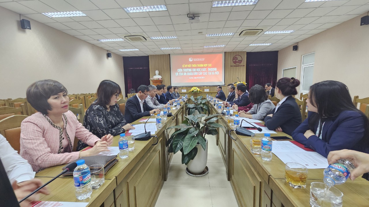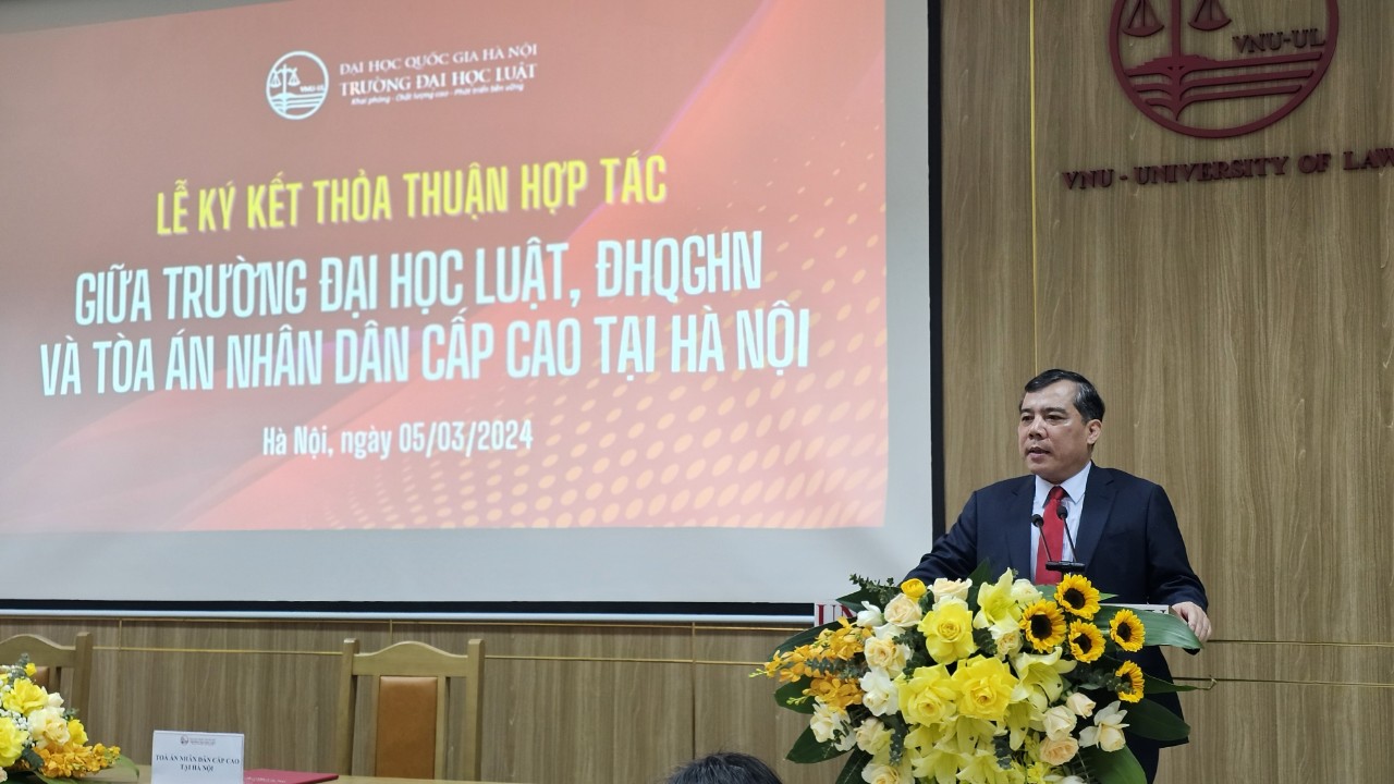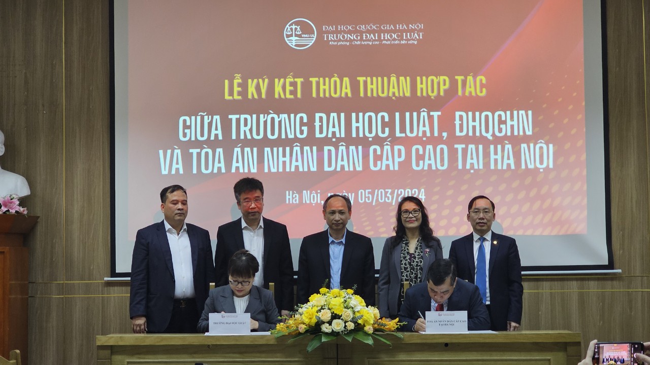 Ngày 05/3/2024, Trường Đại học Luật, ĐHQGHN đã long trọng tổ chức Lễ ký kết thỏa thuận hợp tác giữa Trường và Tòa án nhân dân cấp cao tại Hà Nội.