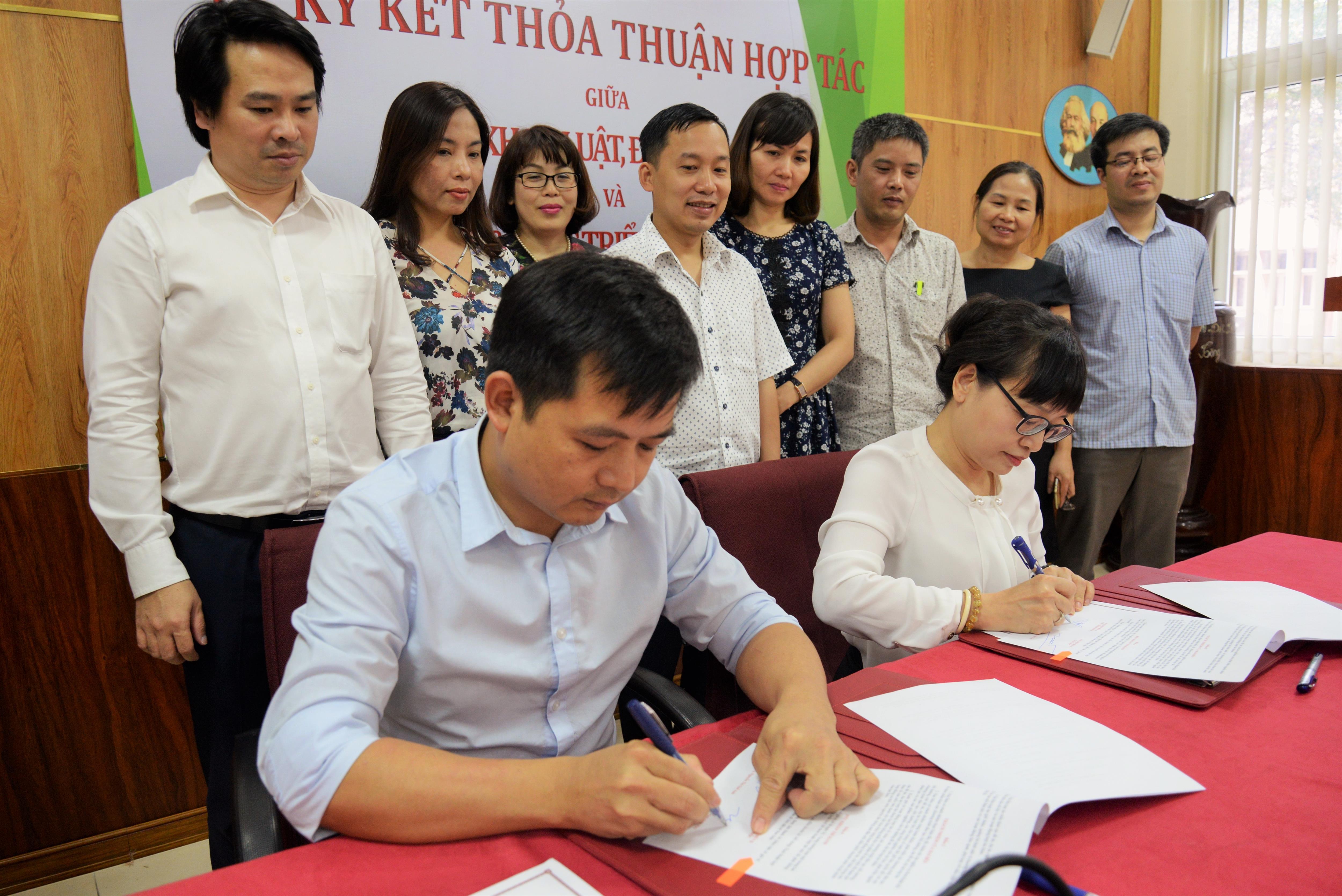 Với mong muốn củng cố, phát triển quan hệ hợp tác, mang lại lợi ích thiết thực cho hai bên và cho xã hội trong lĩnh vực đào tạo, bồi dưỡng kiến thức pháp lý, nghiên cứu dự báo và phát triển nguồn nhân lực, góp phần phát triển thương hiệu của mỗi bên, Khoa Luật đã tổ chức Lễ ký thỏa thuận hợp tác giữa Khoa Luật và Trung tâm Dự báo và Phát triển nguồn nhân lực.Tại buổi Lễ, hai bên đã cùng nhau trao đổi về các nội dung hợp tác như: Hợp tác tổ chức các chương trình đào tạo, bồi dưỡng cho công chức, viên chức, cán bộ là lãnh đạo, chuyên viên công tác tại các bộ, ngành, UBND các cấp, giáo viên, cán bộ quản lý giáo dục và các đối tượng khác; triển khai các đề án, dự án nghiên cứu phát triển nguồn nhân lực theo nhu cầu xã hội và các hoạt động hợp tác khác; hợp tác giới thiệu, quảng bá hình ảnh và thương hiệu của nhau tới các đối tác của mỗi bên khi có các hoạt động liên quan, phù hợp với điều kiện và bối cảnh thực thi…