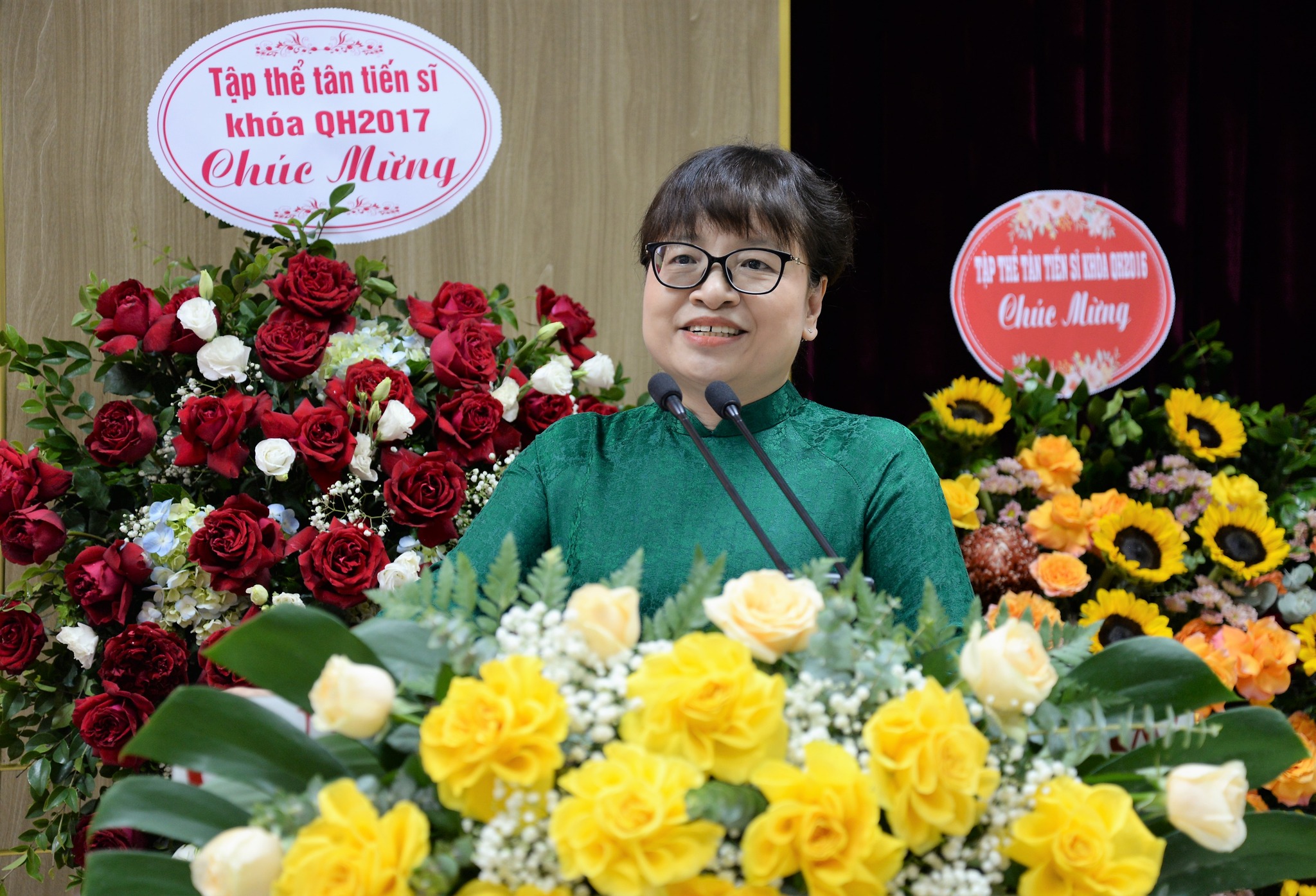 Đại diện 21 tân tiến sĩ, tân Tiến sĩ Bùi Nguyễn Phương Lê đã gửi lời cám ơn ĐHQGHN, Trường Đại học Luật, các thầy giáo, cô giáo đã tận tâm hướng dẫn cho các học viên trong học tập để có được ngày hôm nay. Là nỗ lực, là cố gắng để vừa đảm bảo công tác, vừa đảm bảo thời gian học tập, để có ngày hôm nay, các tân tiến sĩ đã luôn nhận được sự quan tâm của các thầy giáo, cô giáo. Tân Tiến sĩ Bùi Nguyễn Phương Lê hứa sẽ luôn phấn đấu, luôn cống hiến và nghiên cứu khoa học để xứng đáng với công sức của các thầy, cô của Trường Đại học Luật, ĐHQGHN đã dìu dắt, hướng dẫn trong suốt thời gian qua.