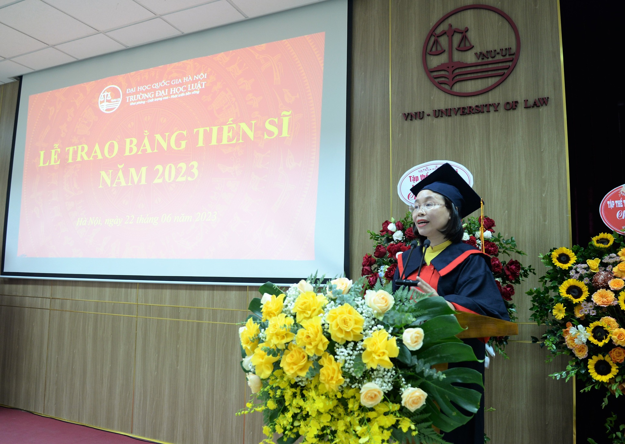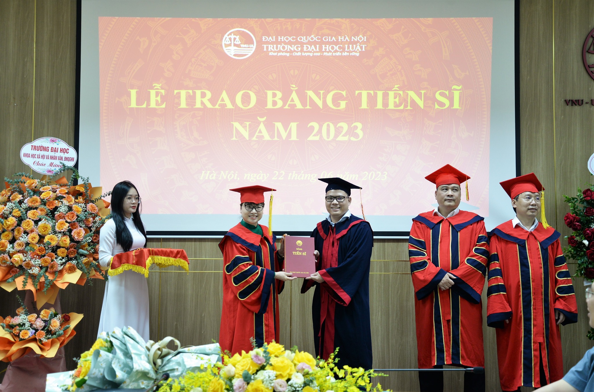 Thực hiện kế hoạch năm học 2022 – 2023, 22/6/2023, Trường Đại học Luật, Đại học Quốc gia Hà Nội (ĐHQGHN) đã long trọng tổ chức Lễ trao bằng tiến sĩ năm 2023.
