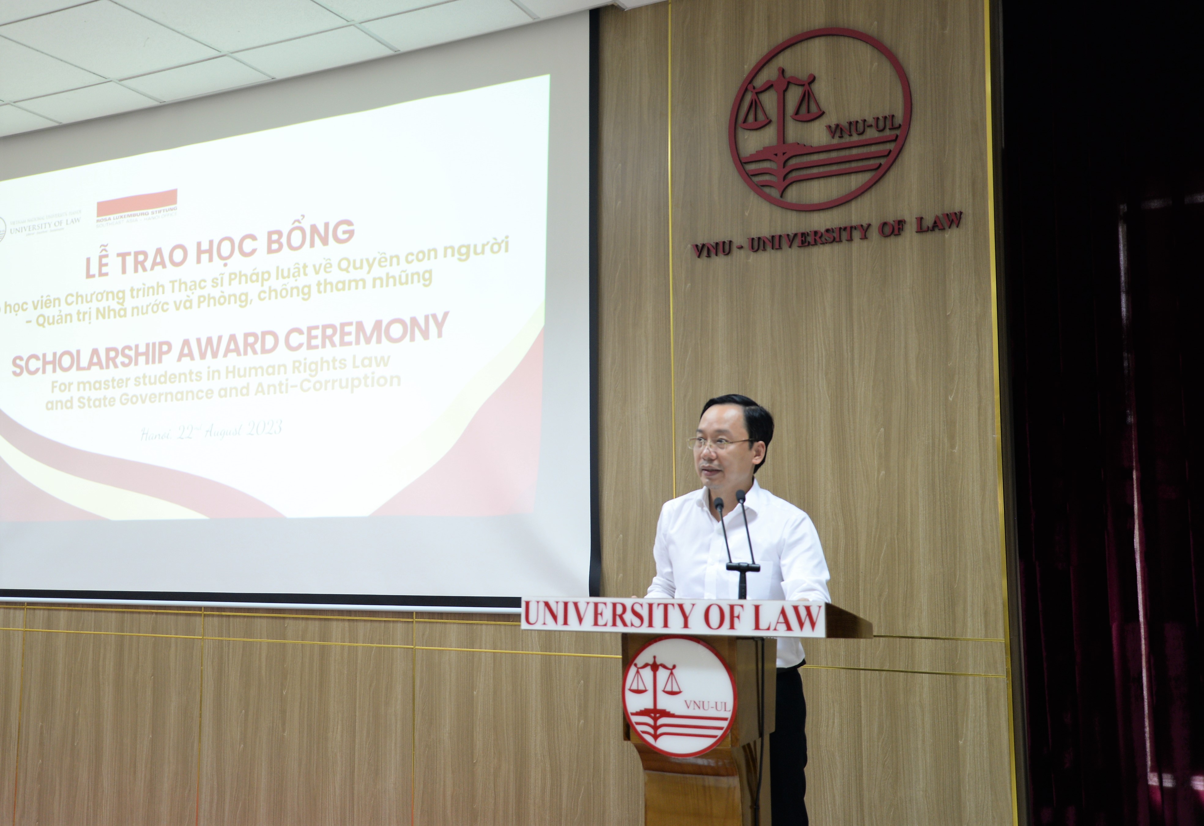 Chiều ngày 22/8/2023, Trường Đại học Luật, ĐHQGHN tổ chức Lễ trao học bổng cho học viên Chương trình Thạc sĩ Pháp luật về Quyền con người và Quản trị Nhà nước và Phòng, chống tham nhũng (QTNN&PCTN).