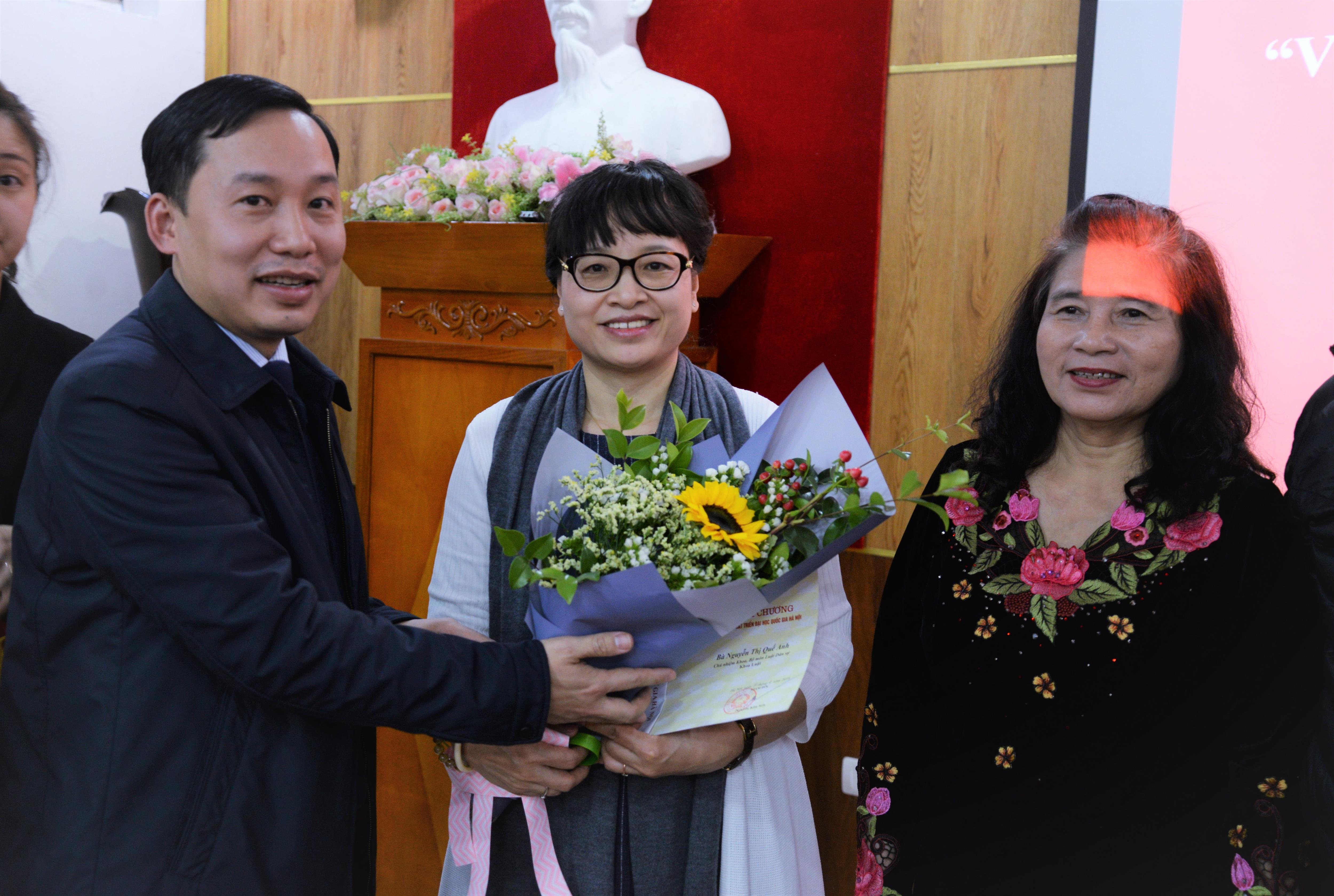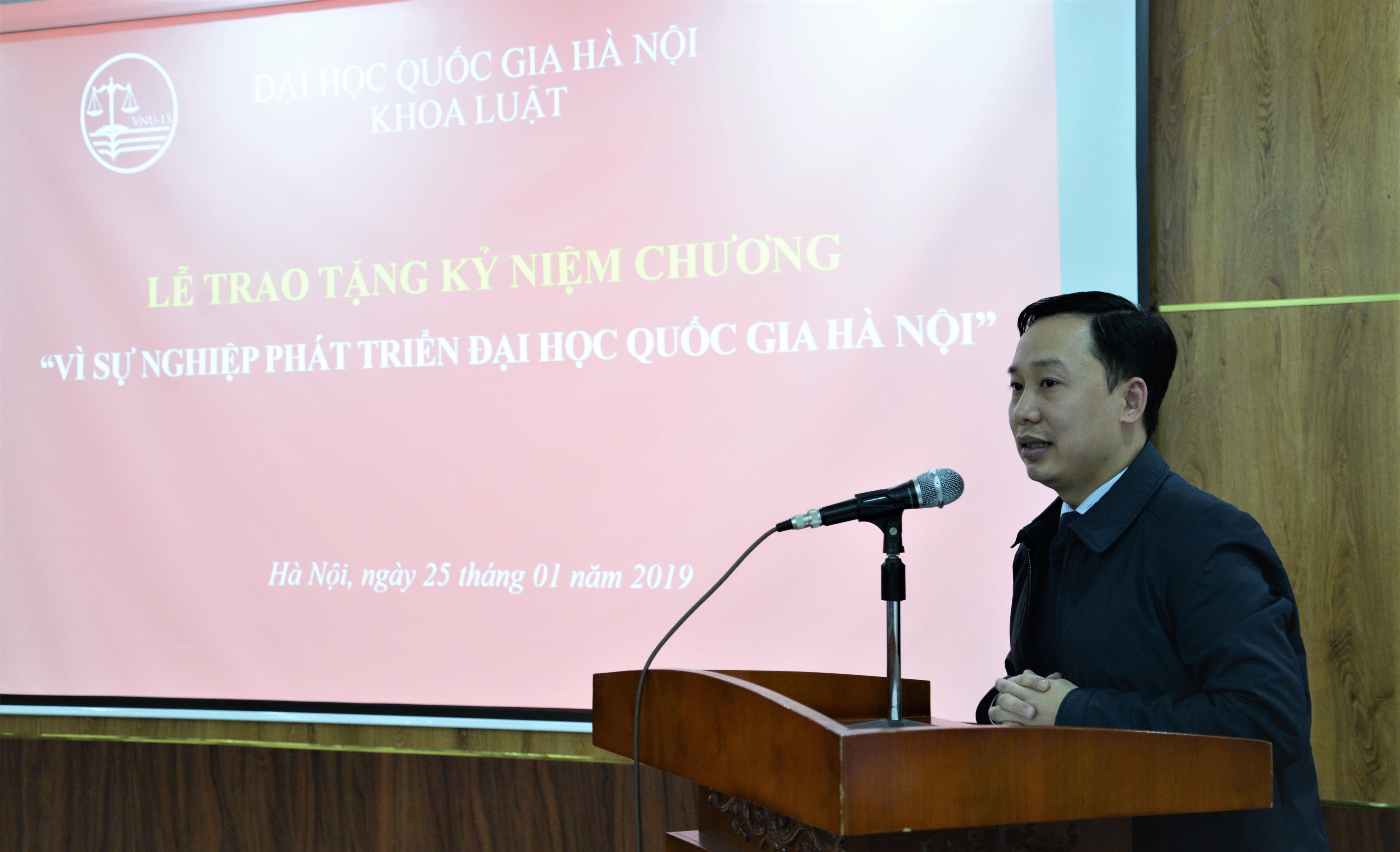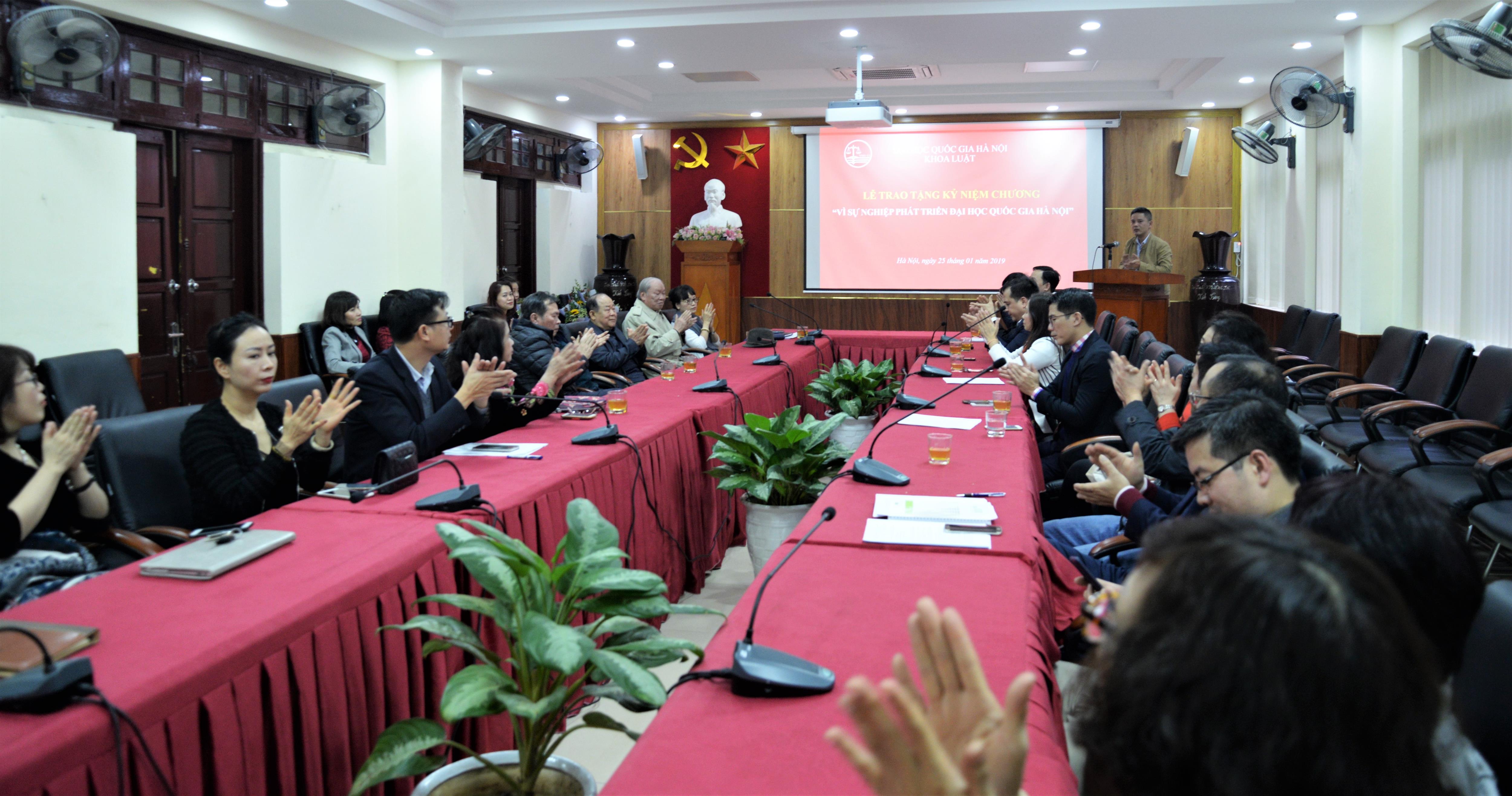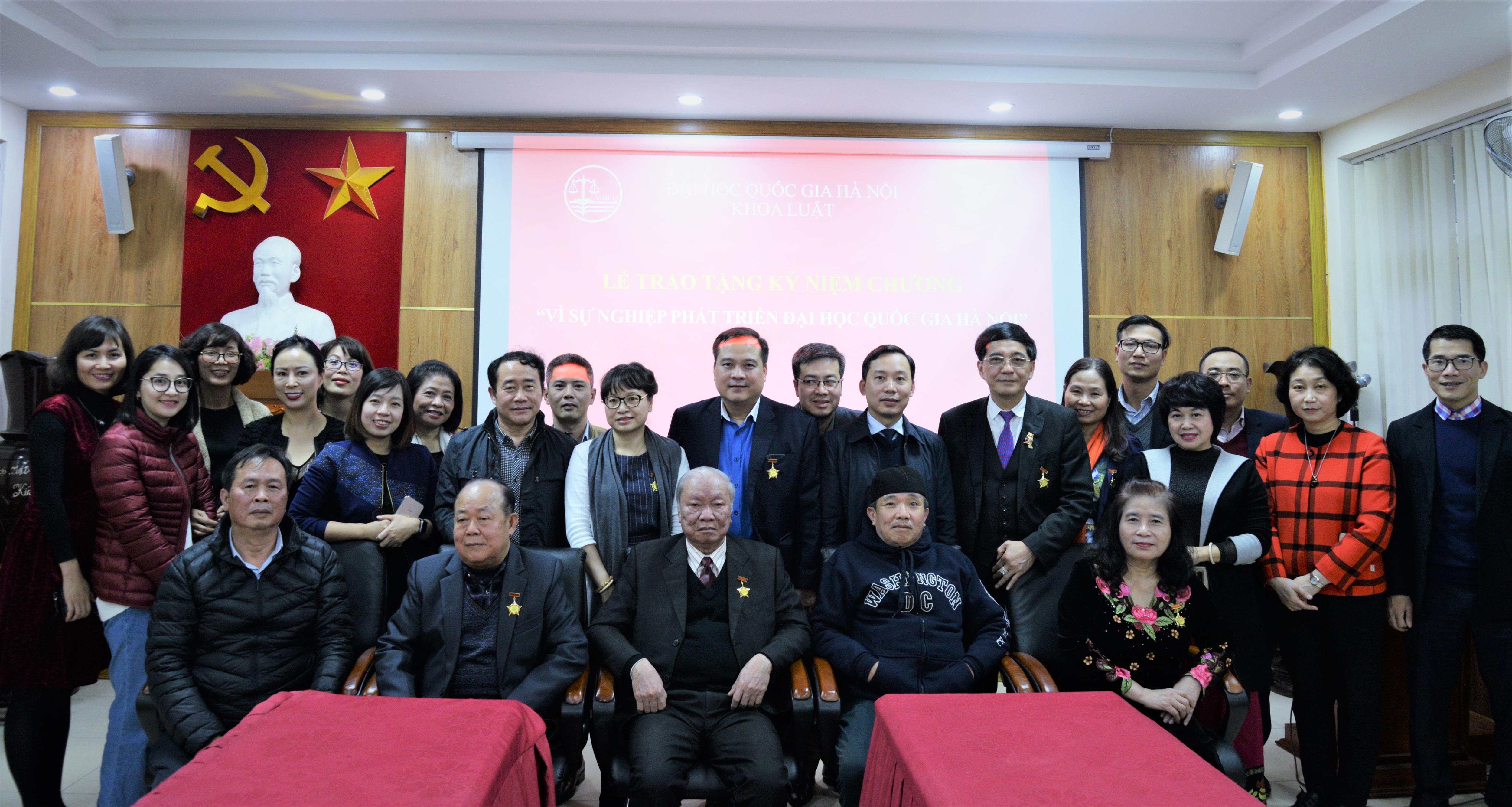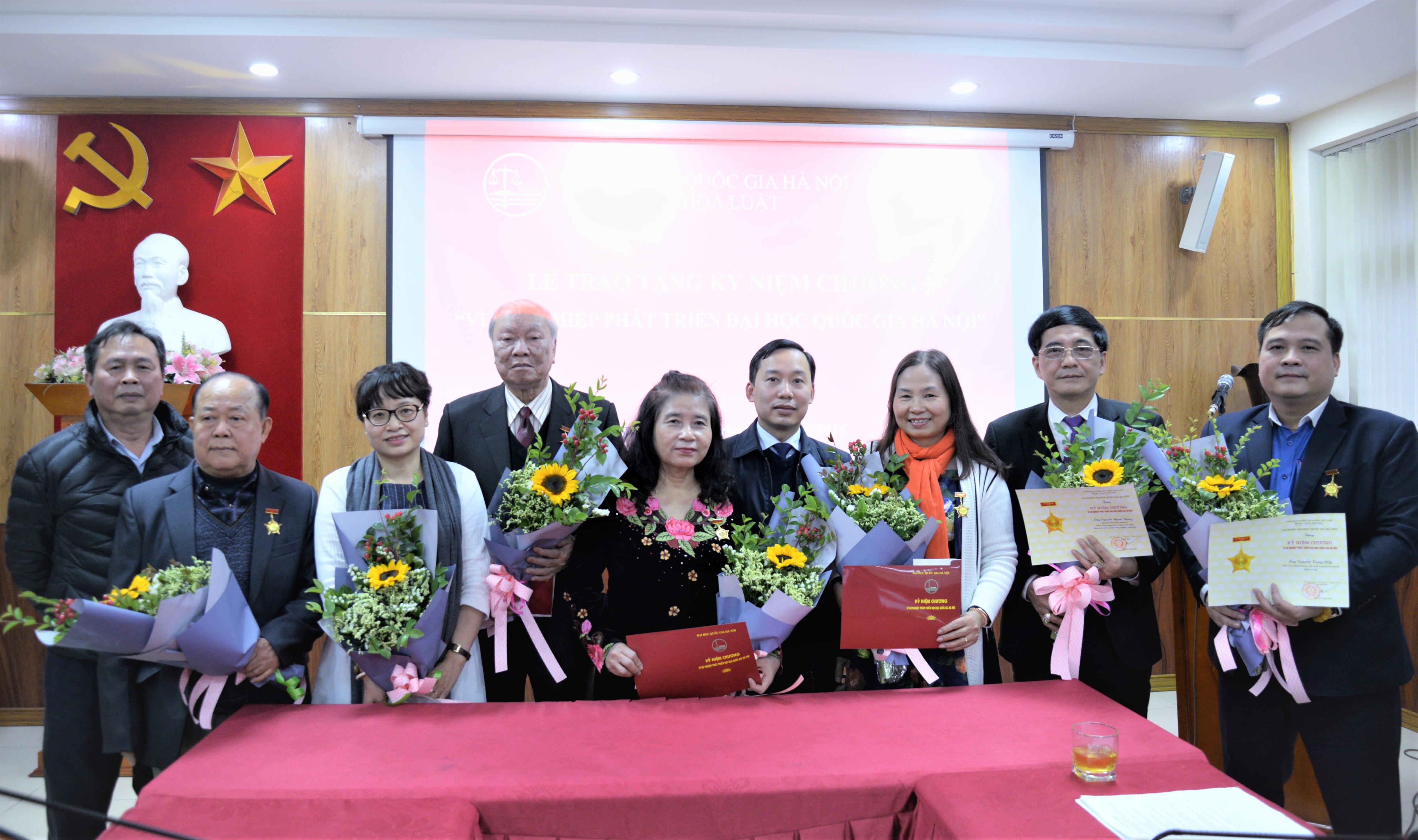Ngày 26/01/2019, Khoa Luật, Đại học Quốc gia Hà Nội (ĐHQGHN) tổ chức Lễ trao tặng Kỷ niệm chương “Vì sự nghiệp phát triển của Đại học Quốc gia Hà Nội” cho 09 thầy, cô giáo có nhiều đóng góp cho sự nghiệp giáo dục.