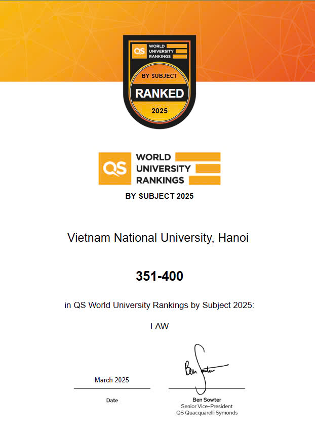 Kết quả này không chỉ phản ánh vị thế vững chắc của Trường Đại học Luật, ĐHQGHN trong nước mà còn cho thấy sự vươn tầm mạnh mẽ trên bản đồ học thuật quốc tế. Việc xuất hiện trong nhóm xếp hạng danh giá này một lần nữa minh chứng cho những bước tiến quan trọng của Nhà trường trong đào tạo, nghiên cứu và hội nhập toàn cầu.