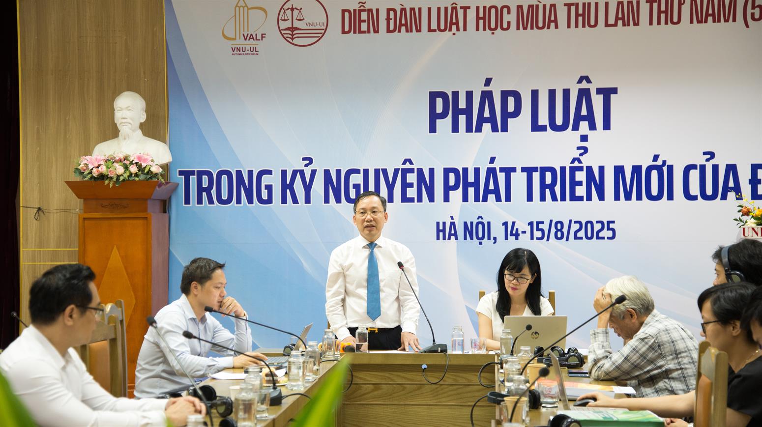Chiều ngày 15/8/2025, tại Trường Đại học Luật, Đại học Quốc gia Hà Nội, Diễn đàn Luật học Mùa Thu lần thứ 5 đã chính thức bế mạc, khép lại hai ngày làm việc liên tục (14–15/8/2025) với nhiều kết quả quan trọng cả về học thuật, chính sách và hợp tác quốc tế.