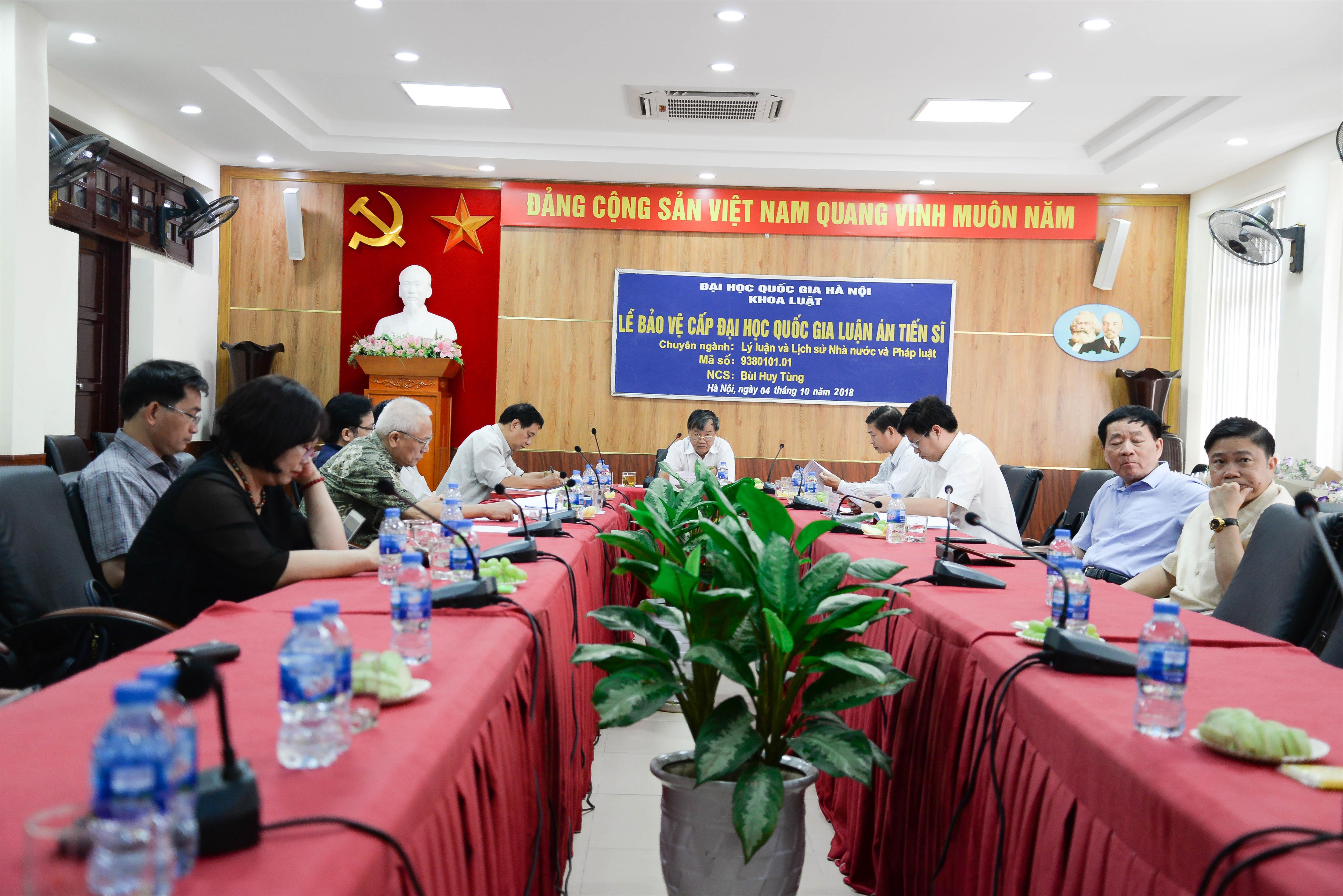 Ngày 04/10/2018, Khoa Luật – Đại học Quốc gia Hà Nội (ĐHQGHN) đã tổ chức bảo vệ luận án tiến sĩ cấp ĐHQGHN cho nghiên cứu sinh (NCS) Bùi Huy Tùng, chuyên ngành Lý luận và lịch sử nhà nước và pháp luật với đề tài: “Kiểm soát đối với quyền lực hành pháp ở Việt Nam hiện nay”.