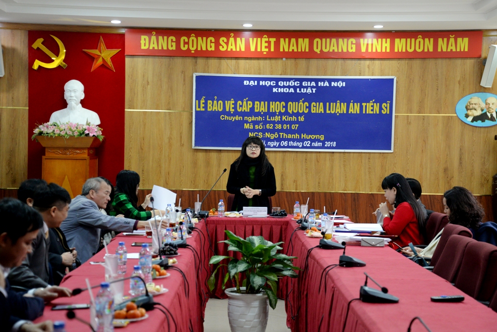 Ngày 06/02/2018, Nghiên cứu sinh (NCS) Ngô Thanh Hương đã bảo vệ thành công luận án tiến sĩ cấp Đại học Quốc gia Hà Nội (ĐHQGHN), chuyên ngành Luật Kinh tế với đề tài “Pháp luật Việt Nam về cho thuê tài chính theo hình thức hợp đồng bán và thuê lại”.