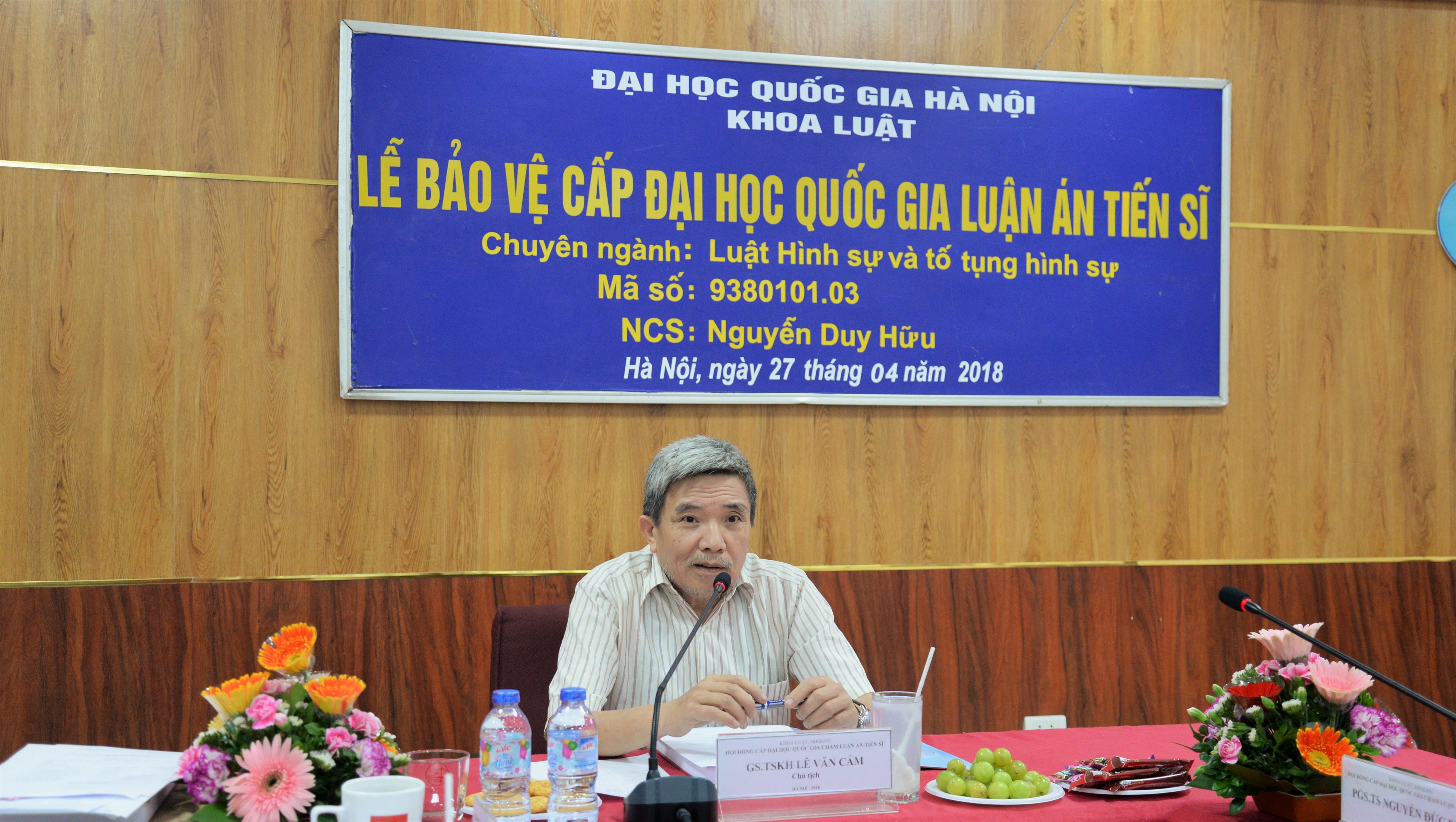 Ngày 27/4/2018, Nghiên cứu sinh (NCS) Nguyễn Duy Hữu đã bảo vệ thành công luận án tiến sĩ cấp Đại học Quốc gia Hà Nội (ĐHQGHN), chuyên ngành Luật Hình sự và Tố tụng Hình sự với đề tài “Các tội xâm phạm sức khỏe của người khác theo Luật hình sự Việt Nam”.