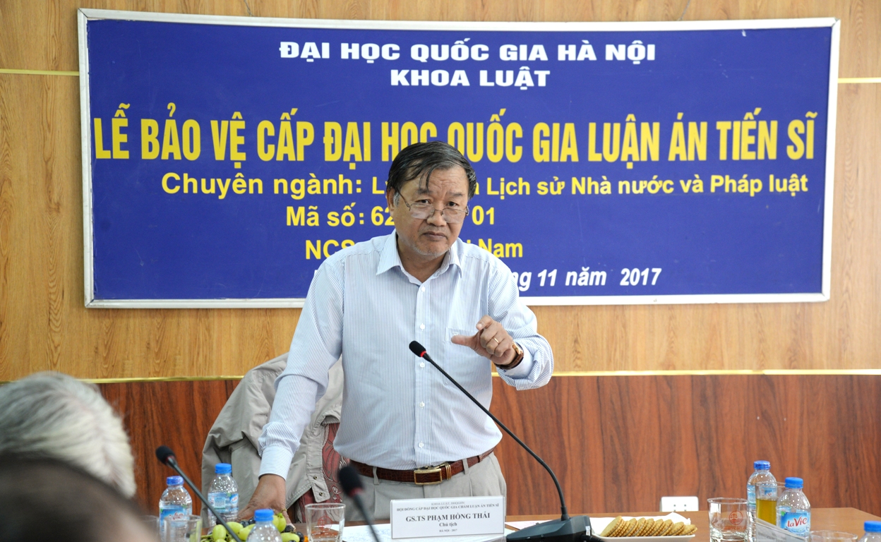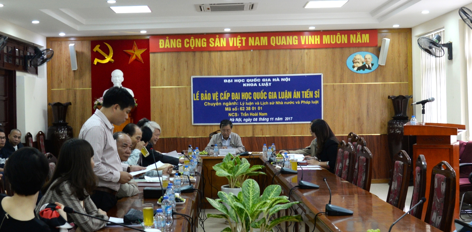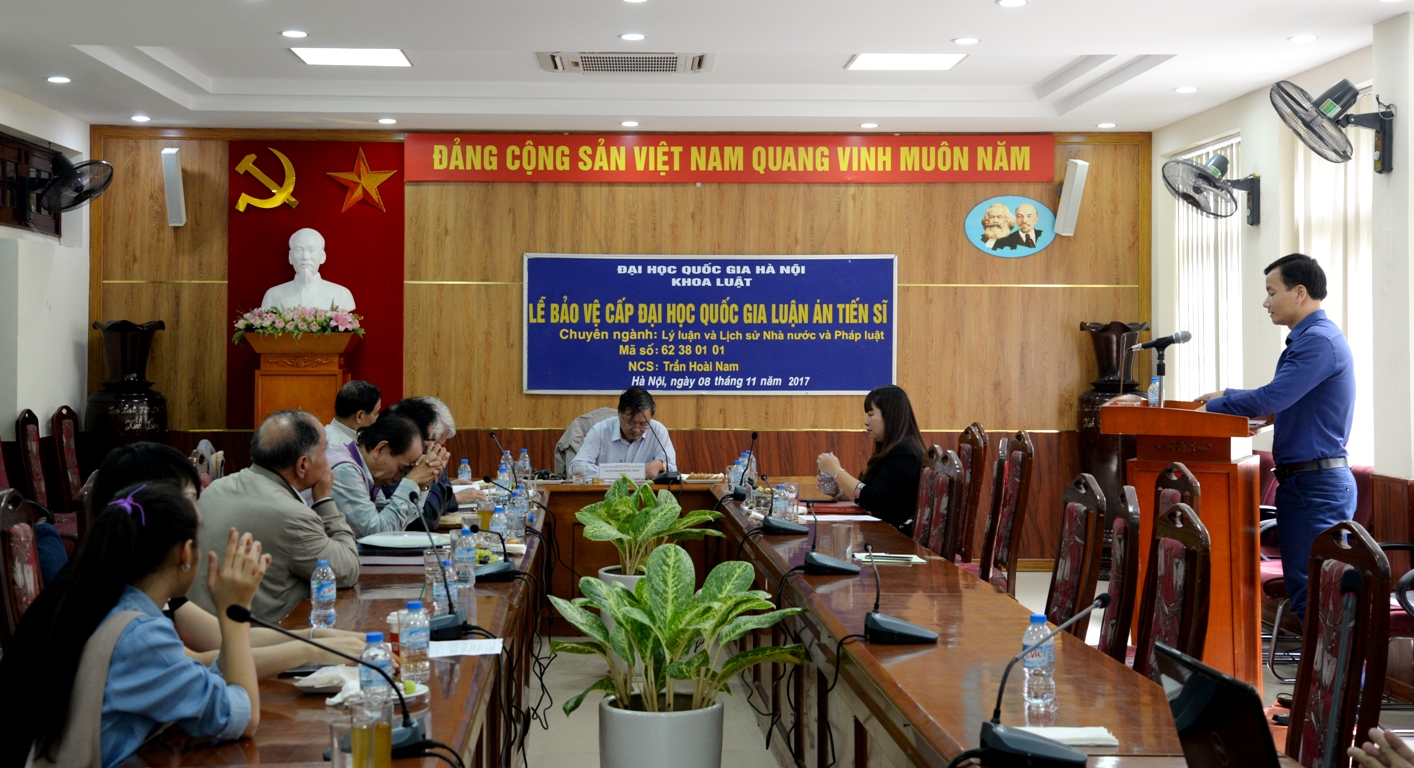 Ngày 08/11/2017, Nghiên cứu sinh (NCS) Trần Hoài Nam, chuyên ngành: Lý luận và Lịch sử Nhà nước và Pháp luật, mã số: 62380101 đã bảo vệ thành công luận án tiến sĩ cấp Đại học Quốc gia Hà Nội (ĐHQGHN) với đề tài “Vai trò, trách nhiệm của Chính phủ đối với hoạt động xây dựng dự án luật, pháp lệnh trong điều kiện xây dựng nhà nước pháp quyền xã hội chủ nghĩa Việt Nam”.