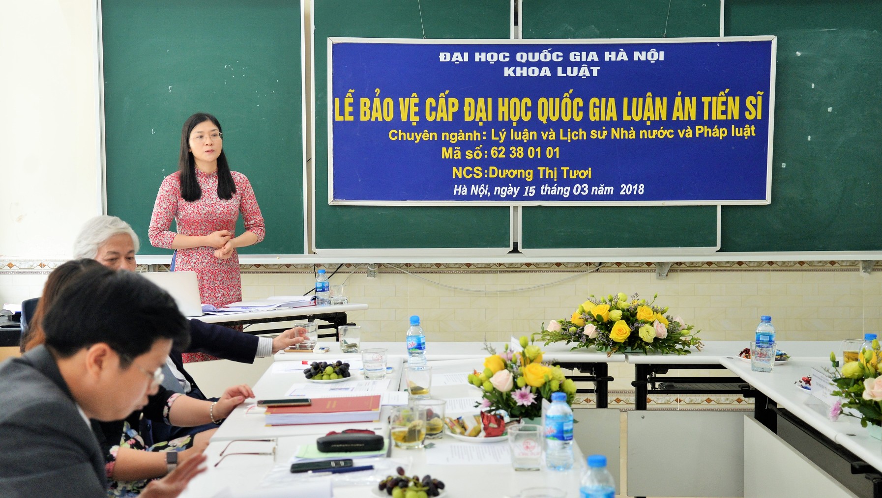 Ngày 15/3/2018, Nghiên cứu sinh (NCS) Dương Thị Tươi đã bảo vệ thành công luận án tiến sĩ cấp Đại học Quốc gia Hà Nội (ĐHQGHN), chuyên ngành Lí luận và lịch sử Nhà nước và Pháp luật với đề tài “Bảo đảm quyền công dân trong tố tụng hành chính”.