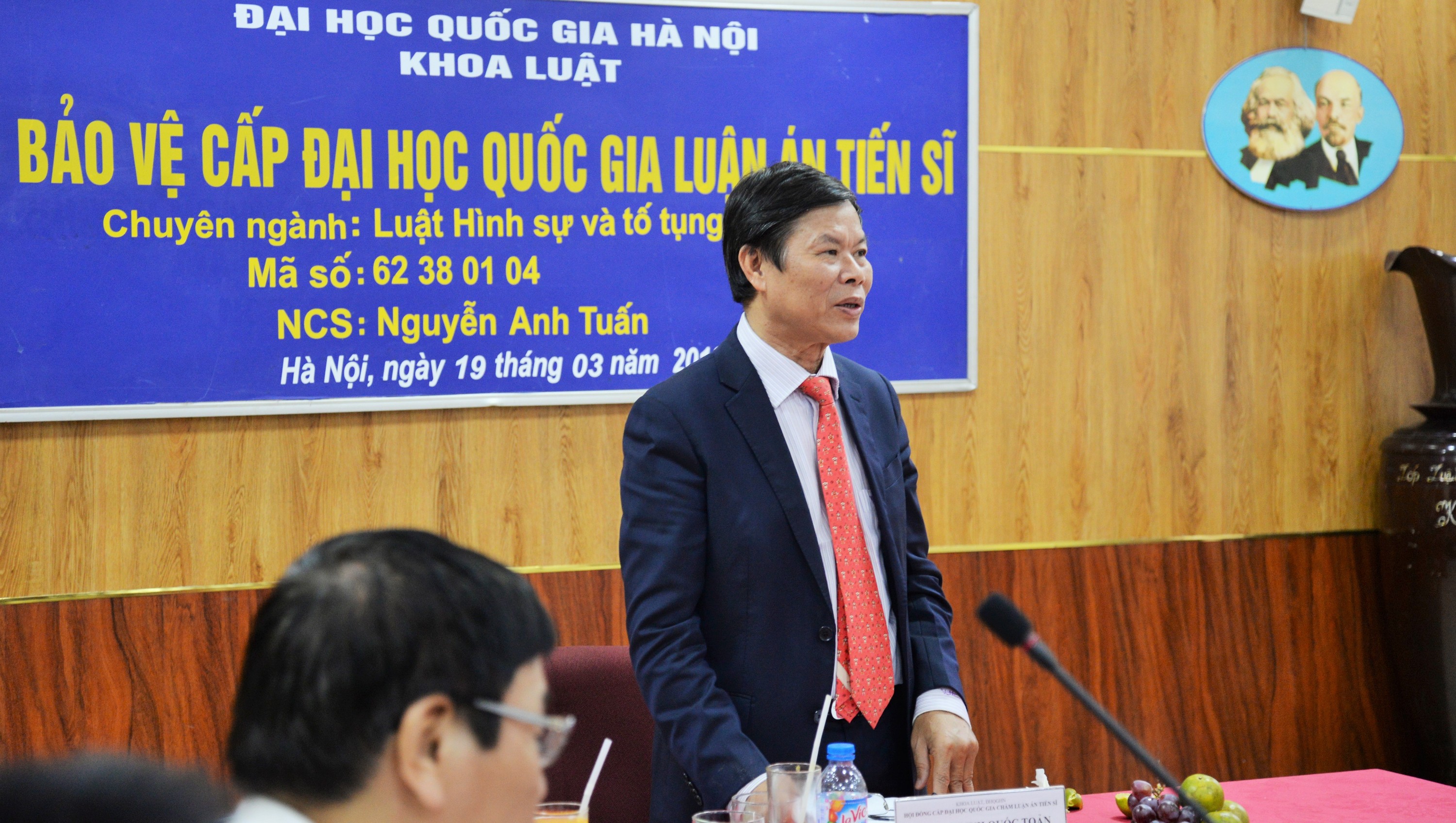 Ngày 19/3/2018, Nghiên cứu sinh (NCS) Nguyễn Anh Tuấn đã bảo vệ thành công luận án tiến sĩ cấp Đại học Quốc gia Hà Nội (ĐHQGHN), chuyên ngành Luật hình sự và Tố tụng Hình sự với đề tài “Những vấn đề lý luận và thực tiễn về nguồn của Luật Hình sự Việt Nam”.