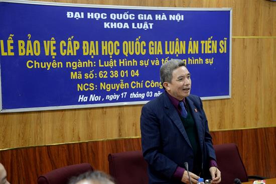 Ngày 17/3/2017 vừa qua, nghiên cứu sinh (NCS) Nguyễn Chí Công, chuyên ngành: Luật Hình sự và Tố tụng hình sự, mã số: 62380104 đã bảo vệ thành công luận án tiến sĩ cấp Đại học Quốc gia Hà Nội với đề tài “Trách nhiệm hình sự với các tội xâm phạm trật tự quản lý kinh tế”.