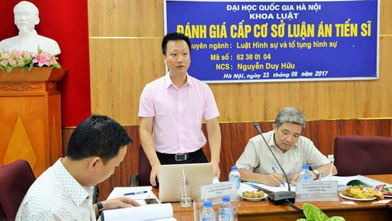 Ngày 23/8/2017, nghiên cứu sinh (NCS) Nguyễn Duy Hữu đã bảo vệ thành công luận án tiến sĩ cấp cơ sở, chuyên ngành Luật Hình sự và Tố tụng Hình sự với đề tài “Các tội xâm phạm sức khỏe của người khác theo Luật hình sự Việt Nam”.