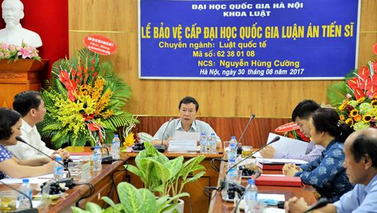 Ngày 30/8/2017, Khoa Luật đã tổ chức Lễ bảo vệ luận án tiến sĩ cấp Đại học Quốc gia Hà Nội cho NCS. Nguyễn Hùng Cường, chuyên ngành Luật Quốc tế với đề tài: “Giải quyết tranh chấp về thềm lục địa trong pháp luật quốc tế”.