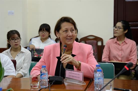 Bà Anne Lange cũng gửi lời cám ơn và vinh dự khi có mặt tại buổi nói chuyện này. Với truyền thống hợp tác lâu đời giữa Đại học Quốc gia Hà Nội và Đại học Tự do Bruxelle, bà cho rằng dự án hợp tác lần này có tầm quan trọng đặc biệt liên quan tới luật biển – một vấn đề chính trị đang rất được quan tâm và bà hi vọng sự hợp tác này sẽ mang lại hiệu quả cho Khoa Luật.