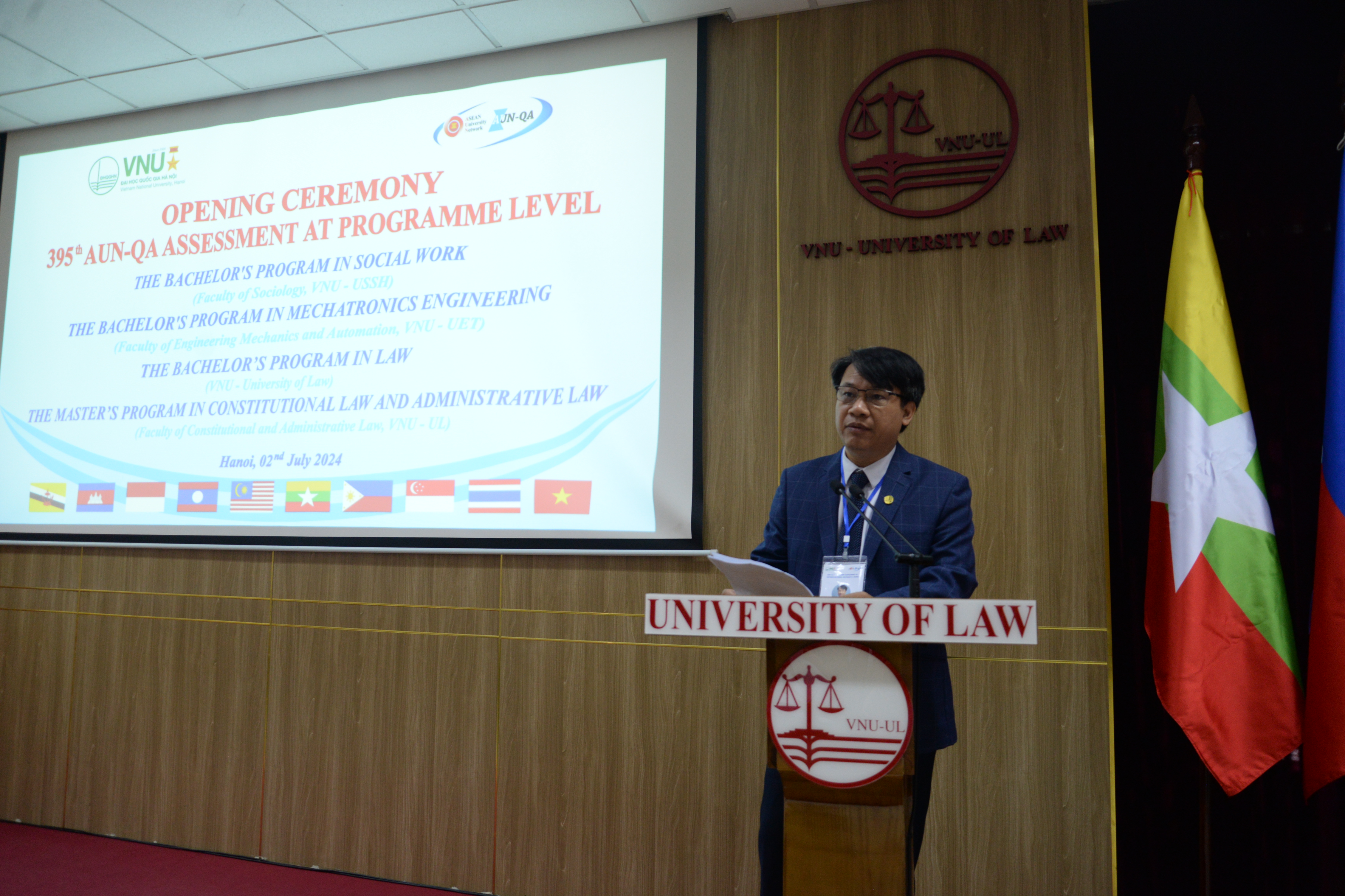 Ngày 02/7/2024, Phiên khai mạc chung Hoạt động đánh giá ngoài của Mạng lưới các Trường ĐH Đông Nam Á (AUN-QA) lần thứ 395 đối với các chương trình đào tạo thuộc Đại học Quốc gia Hà Nội đã diễn ra tại Trường Đại học Luật, ĐHQGHN. Phiên khai mạc có sự tham gia của lãnh đạo ĐHQGHN, lãnh đạo một số trường thành viên và các đơn vị trực thuộc ĐHQGHN.