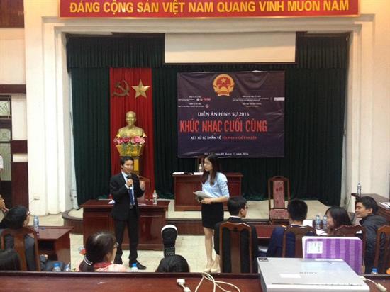 Sau chương trình là phần giao lưu với các vị khách mời đó là những chia sẻ ý nghĩa nhất: “Chủ động, sáng tạo, trách nhiệm”- Đó chính là lời khen mà cô Lê Lan Chi – Giảng viên bộ môn Tư pháp Hình sự của Khoa Luật ĐHQGHN đã giành cho Diễn án 2016. Mặc dù Diễn án đã khép lại, nhưng chắc hẳn trong số tất cả chúng ta, vẫn đang rạo rực những dòng cảm xúc, những ấn tượng khó có thể phai mờ. Diễn án 2016 không đơn thuần là một cuộc chiến vì công lý, bảo vệ công lý, mà còn là một minh chứng cho tinh thần đồng đội, cho ý chí và quyết tâm không ngừng nghỉ của tất cả mọi người. Như vậy, công lý được thực thi, ánh sáng của lẽ phải đã được soi rọi vào những góc sâu thẳm nhất trong trái tim con người. Diễn án năm nay, đã làm nảy nở trong tôi- trong bạn- trong tất cả chúng ta, những mầm non của sự khát khao đi tìm lẽ phải và công bằng trong cuộc sống, thổi bùng lên trong chúng ta ngọn lửa của niềm tin về một cuộc sống hạnh phúc và tốt đẹp trong tương lai.