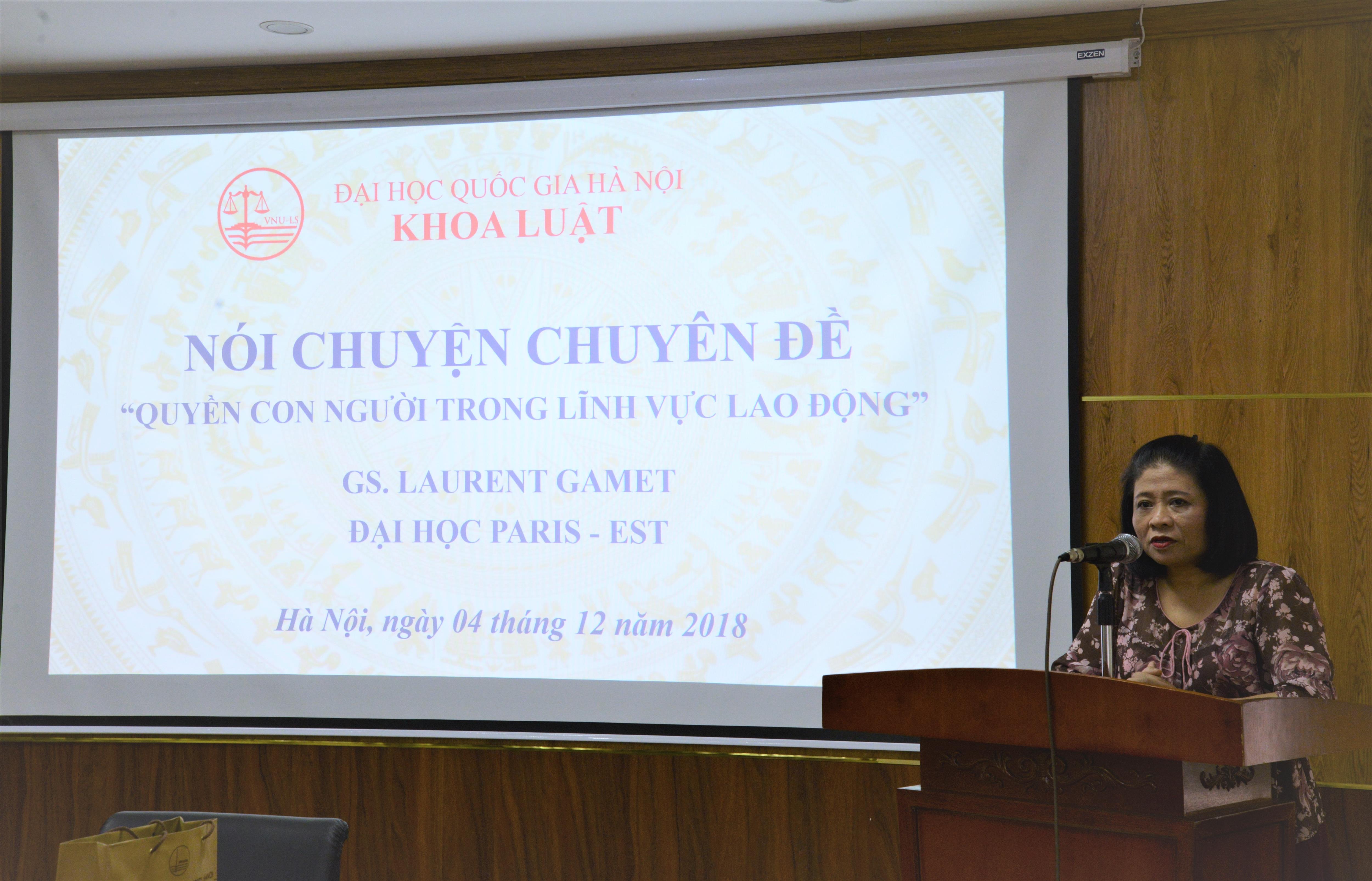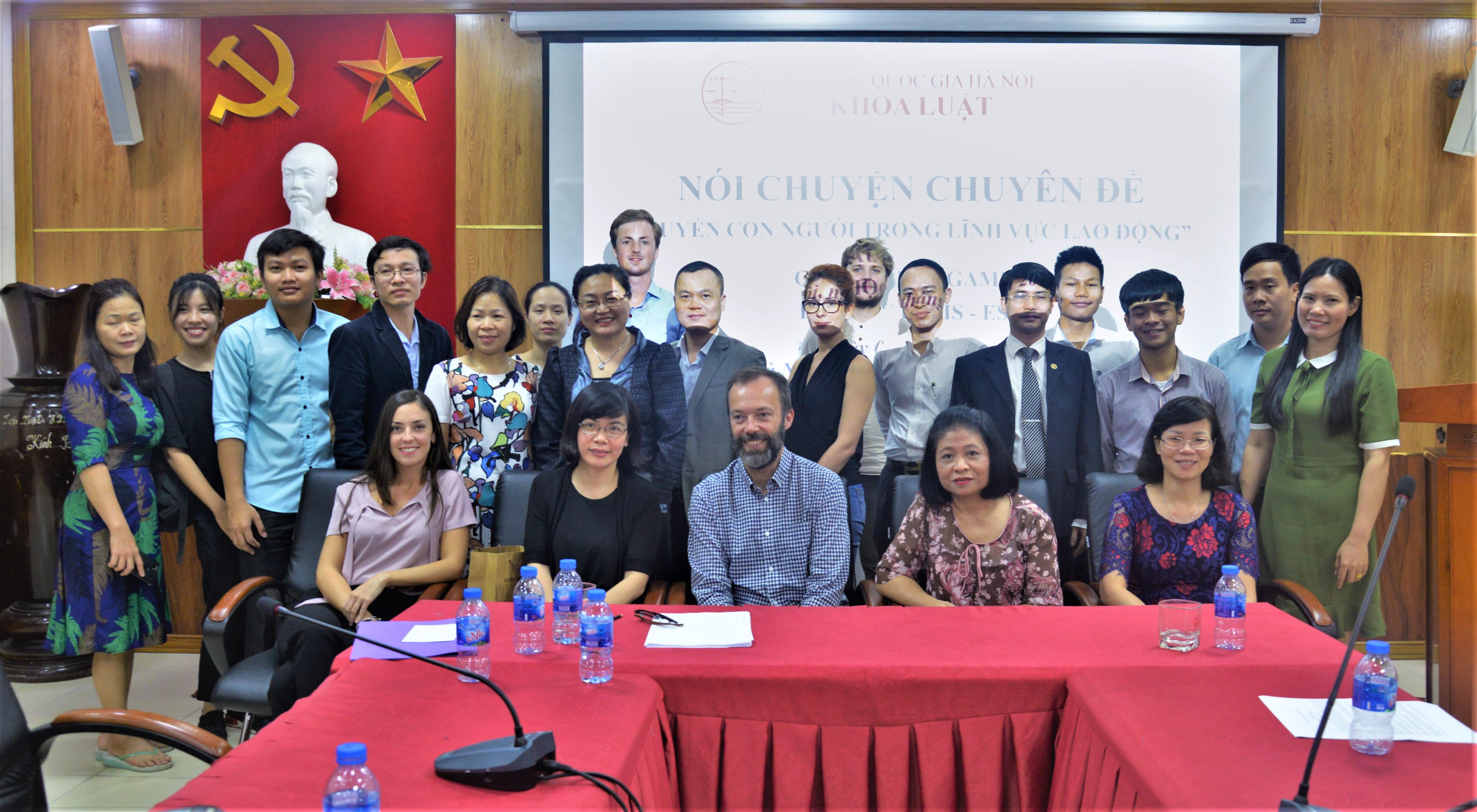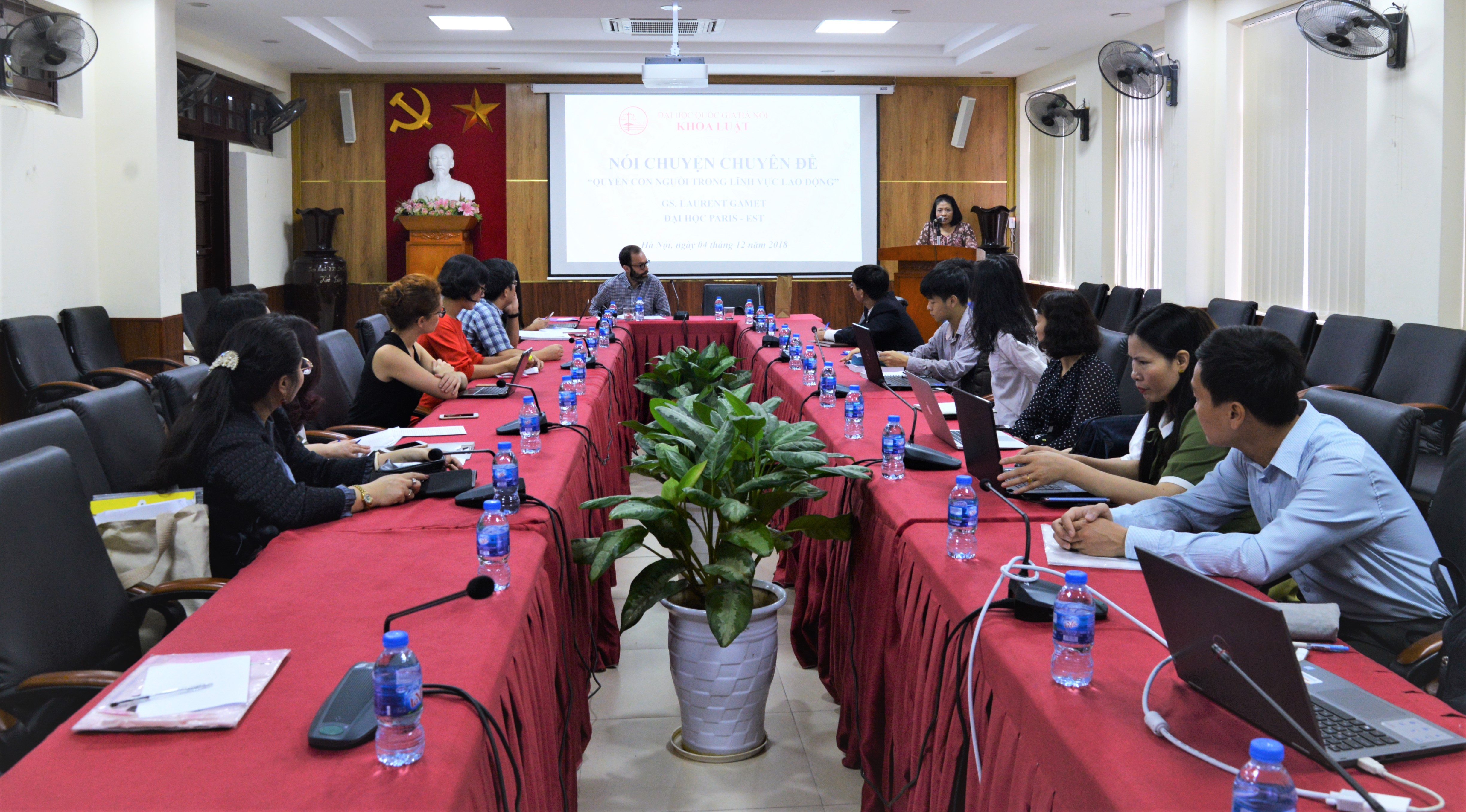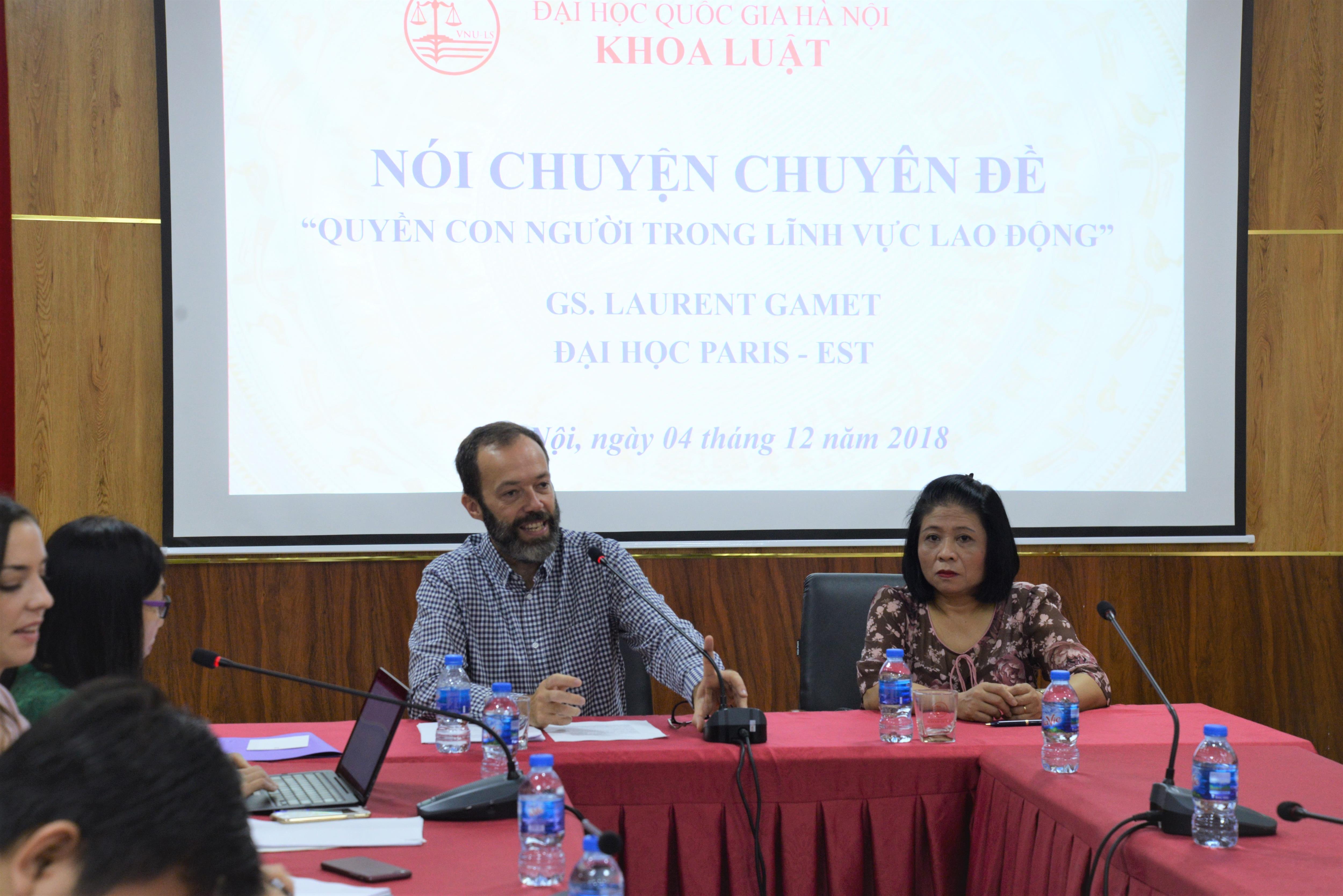 Ngày 04/12/2018, Khoa Luật, Đại học Quốc gia Hà Nội đã tổ chức buổi thuyết trình của GS. Laurent Gamet – Đại học Paris-Est, chuyên gia về Luật Lao động và An sinh xã hội của Cộng hòa Pháp với chủ đề “Quyền con người trong lĩnh vực lao động”.