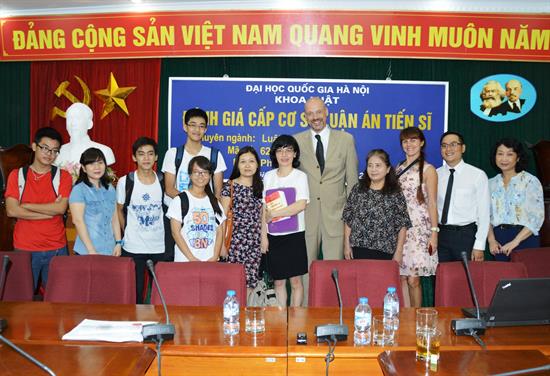 Tới dự có PGS.TS. Trịnh Quốc Toản – Q. Chủ nhiệm Khoa, TS. Phan Thị Thanh Thủy – Phụ trách phòng QLKH & HTPT, TS. Nguyễn Minh Tuấn – giảng viên Bộ môn LL&LSNN&PL.