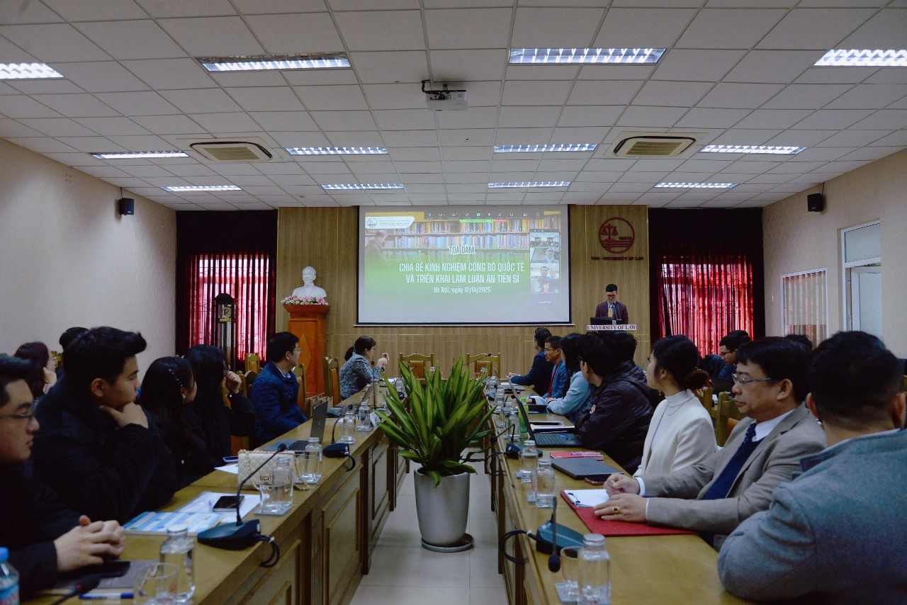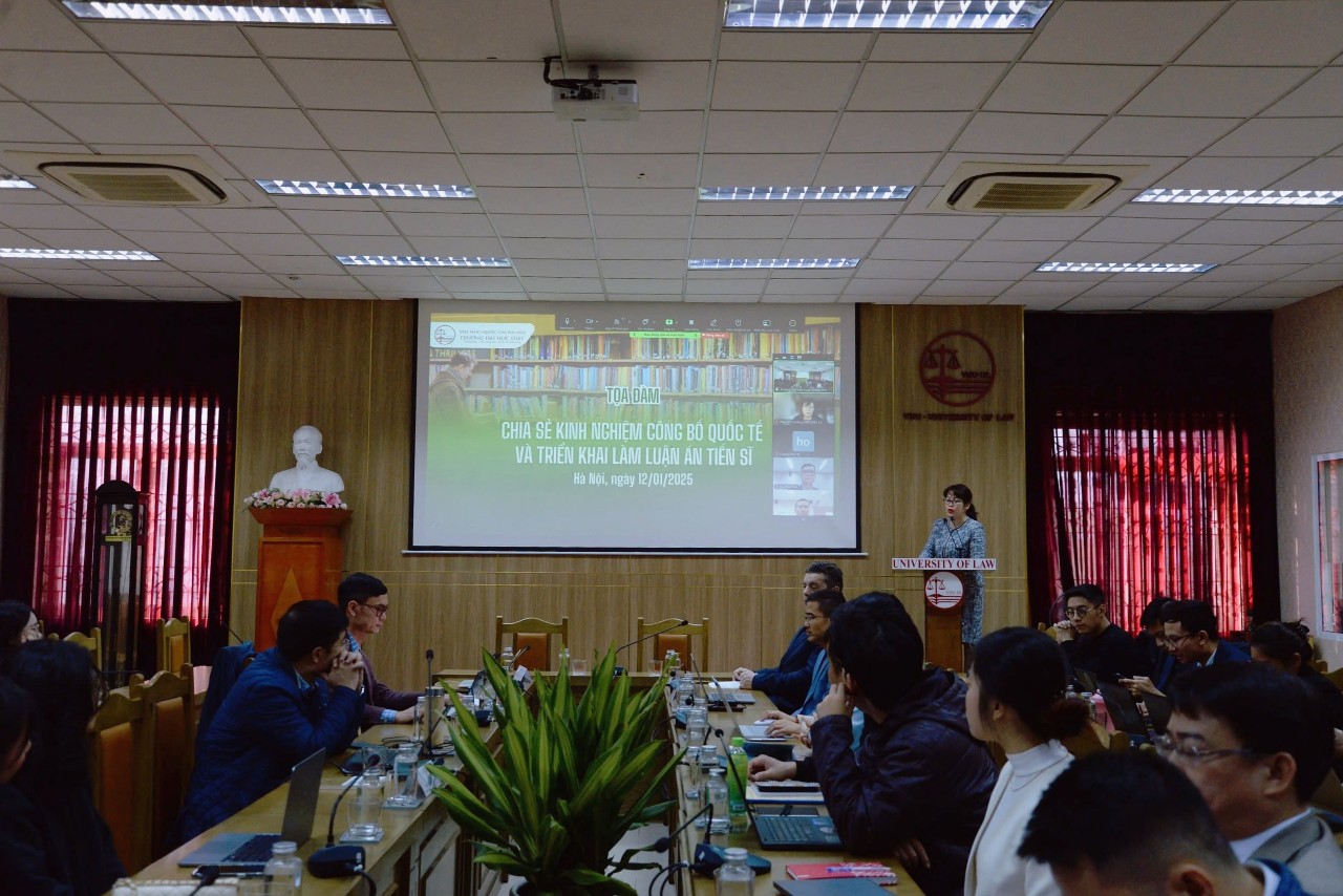 Sáng ngày 12/01/2025, Trường Đại học Luật, ĐHQGHN đã tổ chức Tọa đàm “Chia sẻ kinh nghiệm công bố quốc tế và triển khai làm luận án tiến sĩ”. Diễn giả của Tọa đàm là GS. Daniel Maurice Silverstone, Giảng viên Đại học Liverpool John Moores (Anh) và Đại học Griffith (Úc) và TS. Lương Thanh Hải, Đại học Griffith (Úc). Tọa đàm được tổ chức bằng cả hai hình thức trực tiếp và trực tuyến.