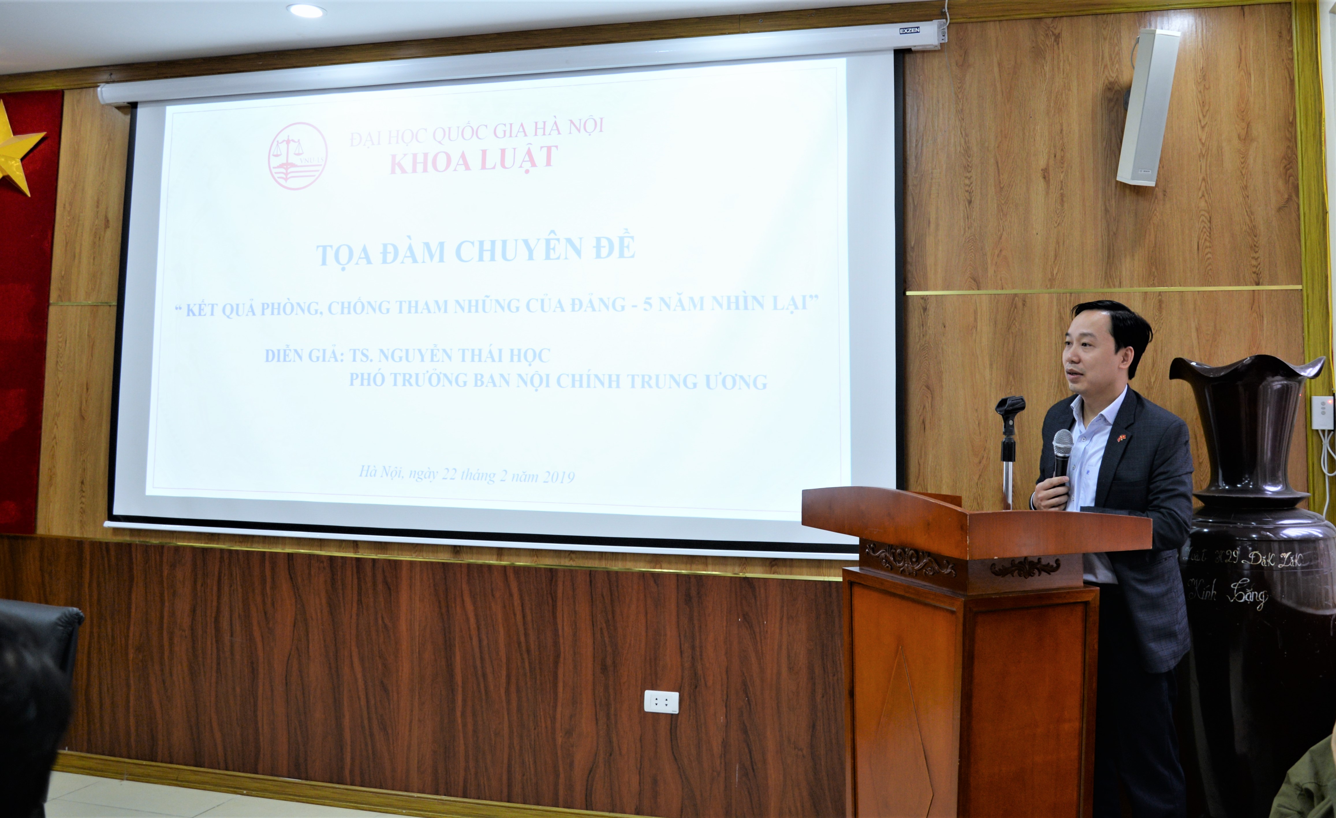 Ngày 22/02/2019, tại Khoa Luật, Đại học Quốc gia Hà Nội đã diễn ra Tọa đàm của đồng chí Nguyễn Thái Học, Phó Trưởng Ban Nội chính Trung ương về “Kết quả phòng chống tham nhũng của Đảng – 5 năm nhìn lại”.